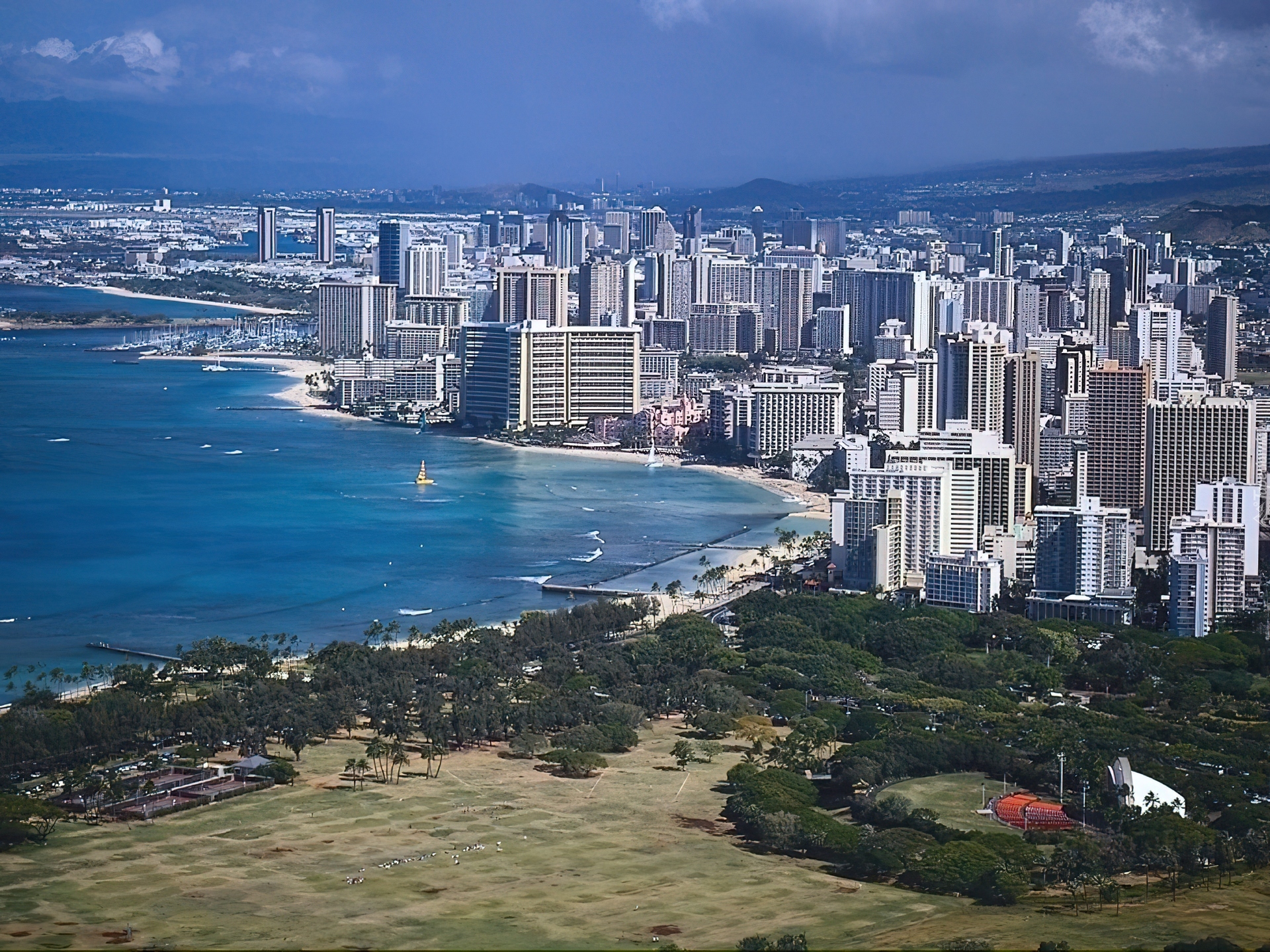 Edytor tapety: Morze, Zabudowania, Zieleń