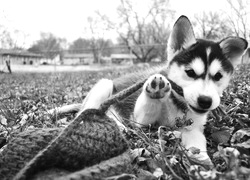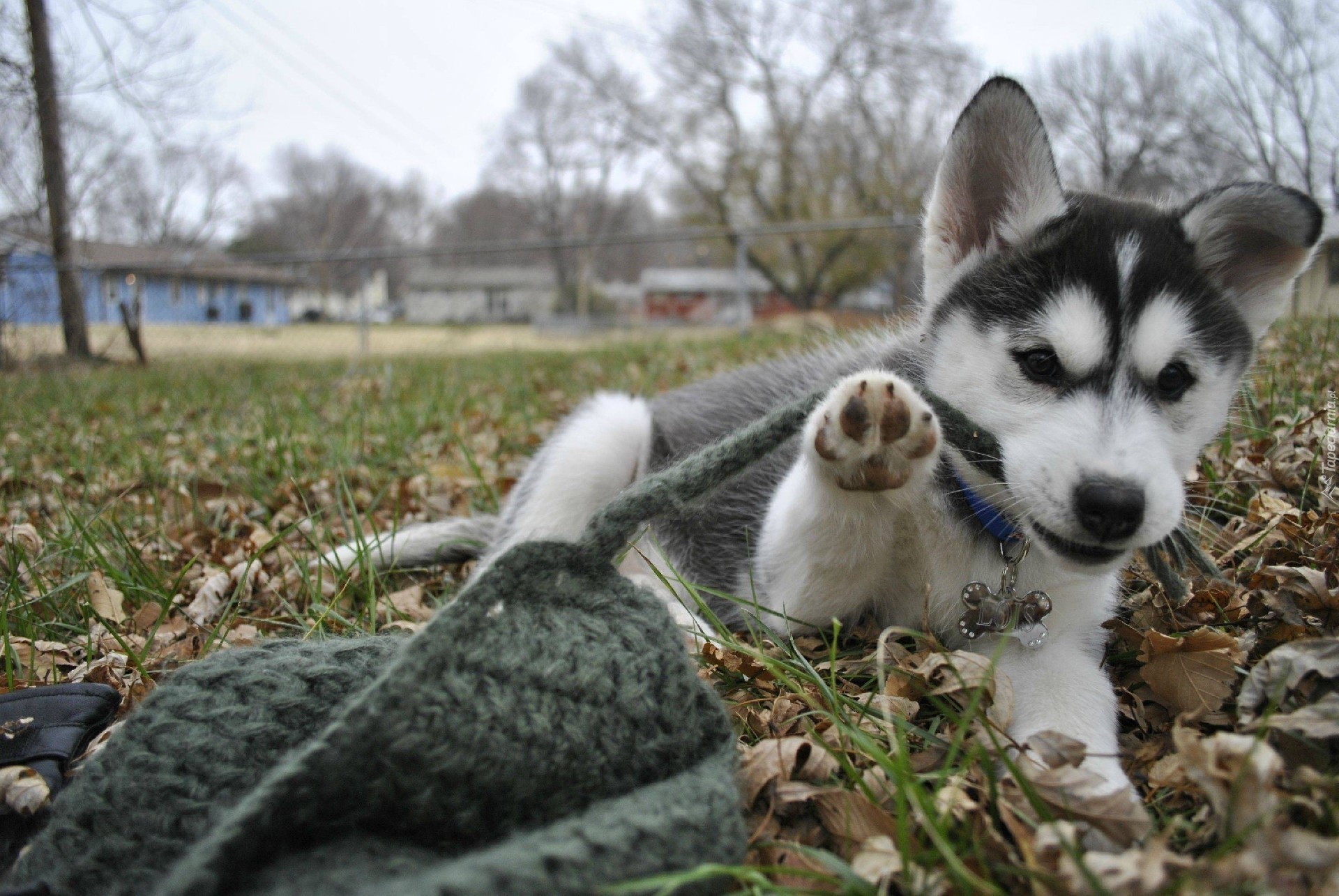 Edytor tapety: Szczeniak, Łapka, Trawa, Liście