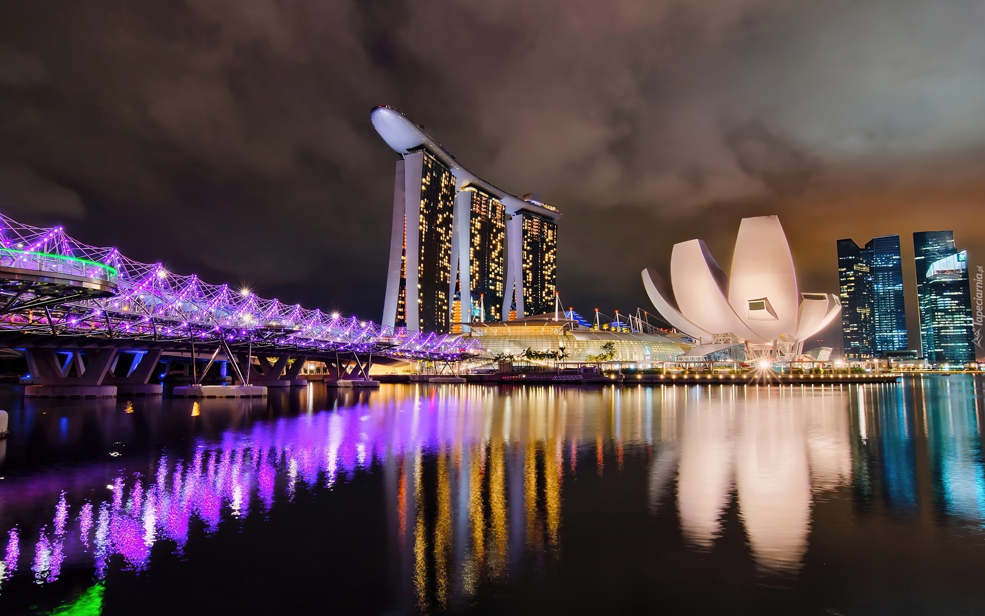 Edytor tapety: Miasto, Woda, Oświetlenie, Marina Bay Sands