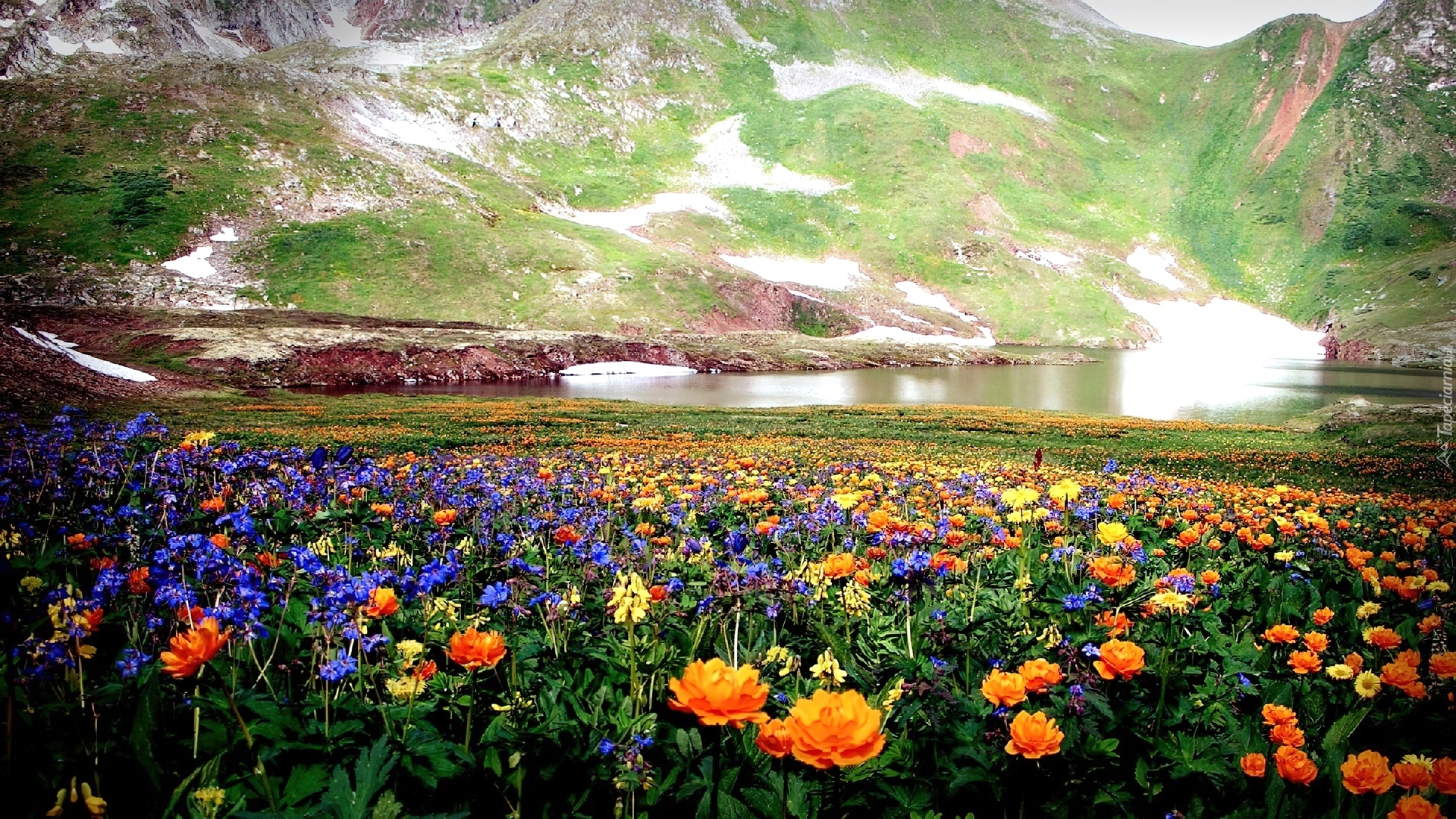 Edytor tapety: Góry, Łąka, Woda