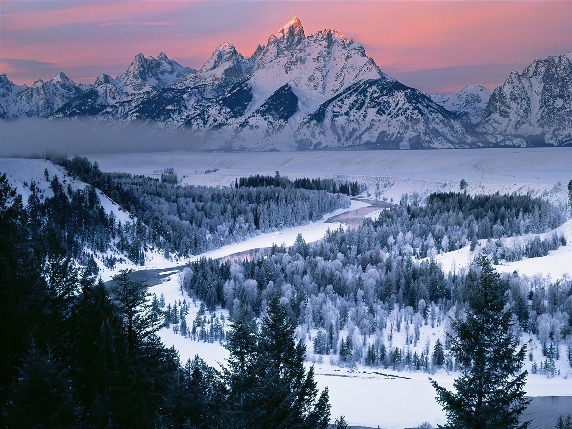 Edytor tapety: Wyoming, Drzewa, Śnieg, Góry