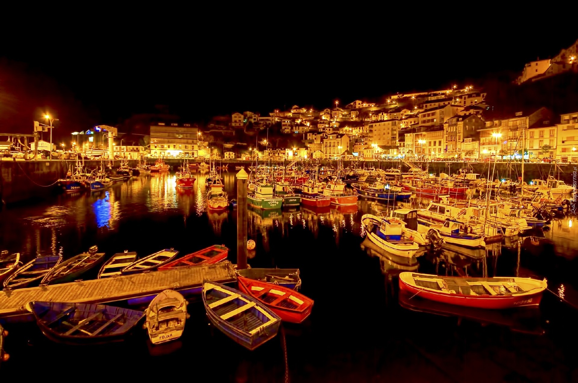 Edytor tapety: Port, Jachty, Miasto, Nocą