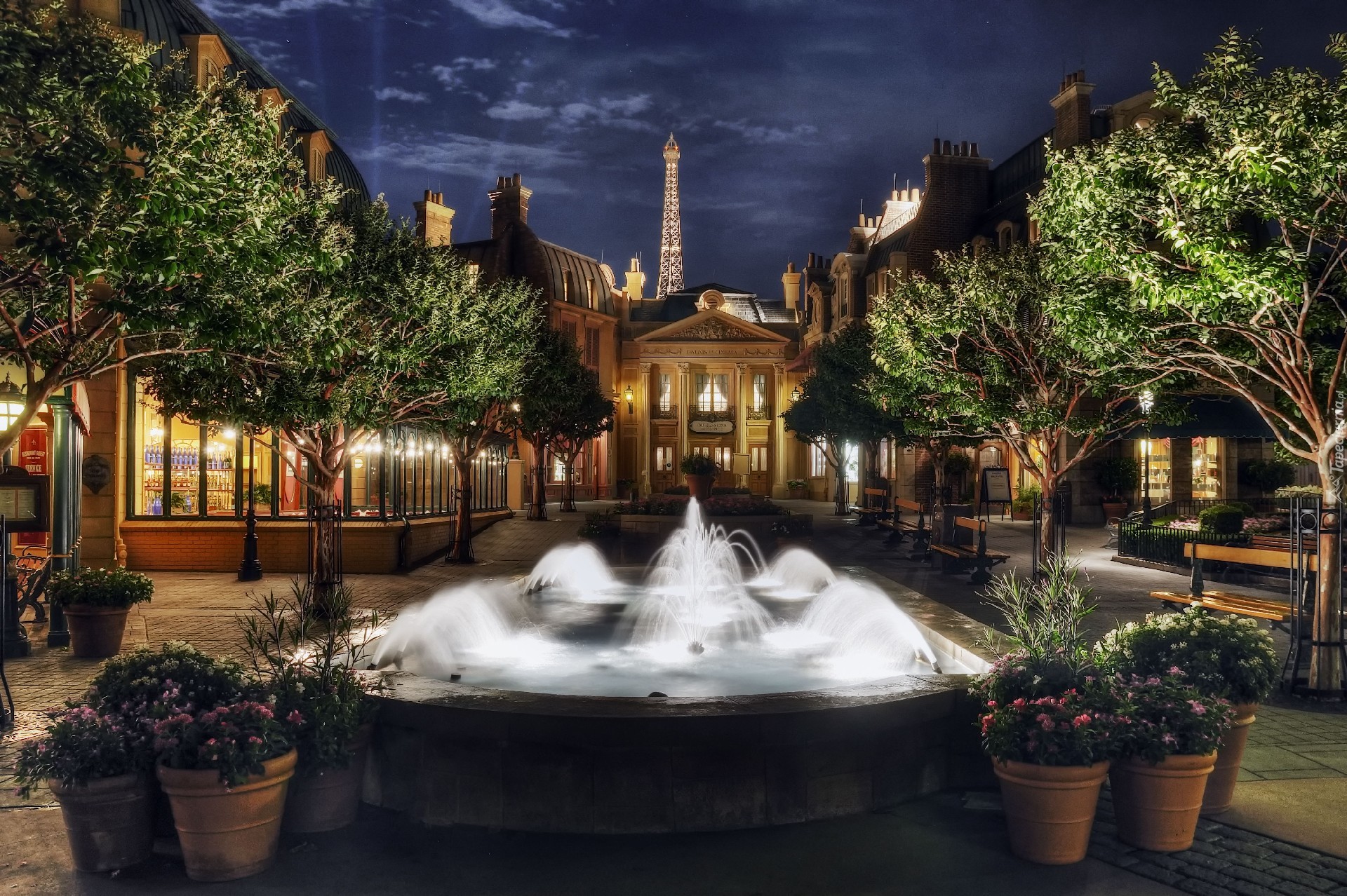 Edytor tapety: Hotel, Fontanna, Drzewa, Francja