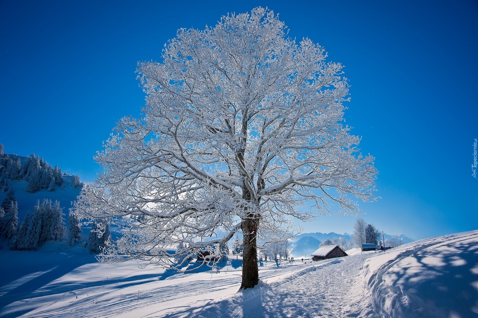 Edytor tapety: Ośnieżona, Górka, Samotne, Oszronione, Drzewo