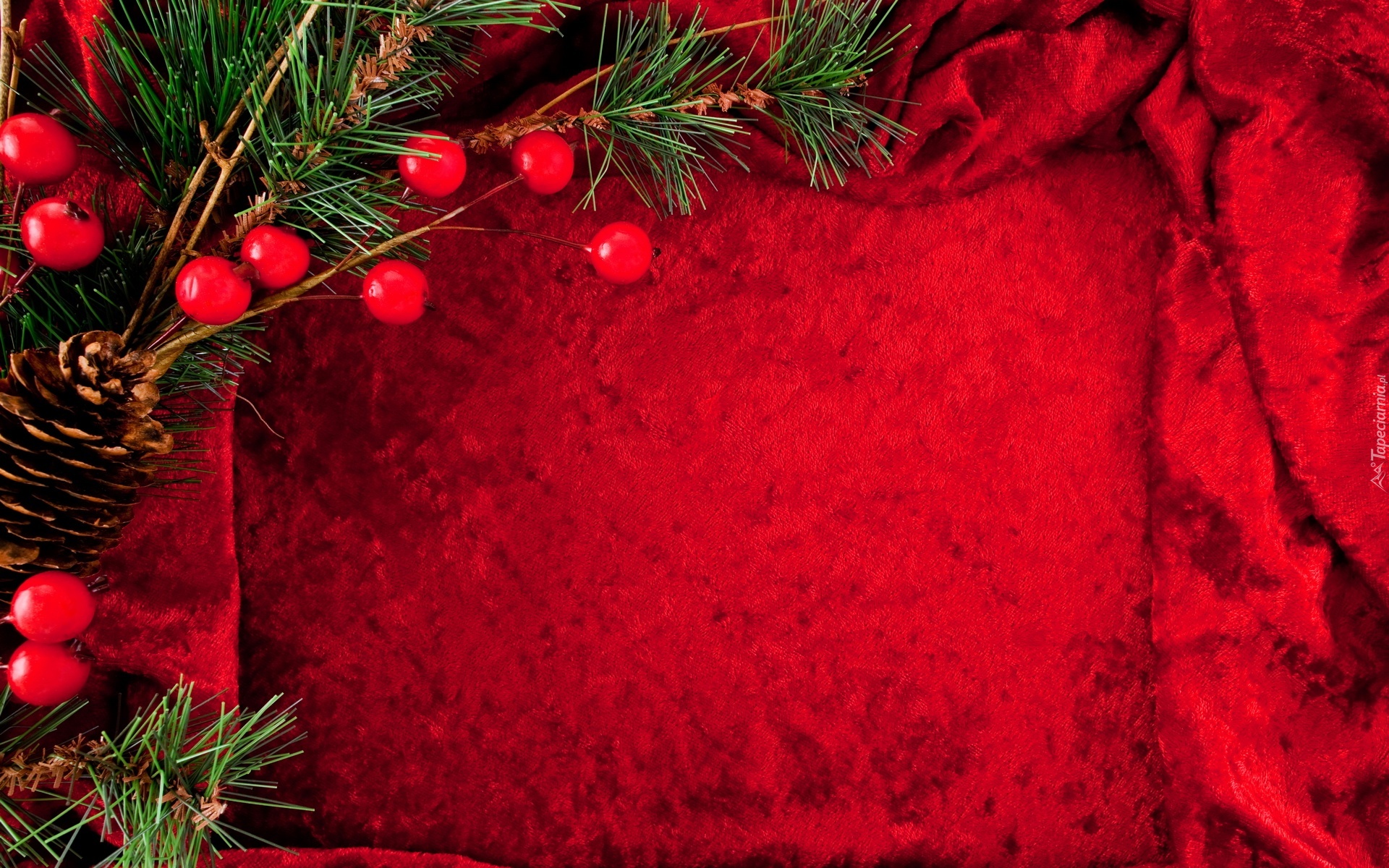 Edytor tapety: Czerwona, Tkanina, Szyszka, Gałązki, Świerk