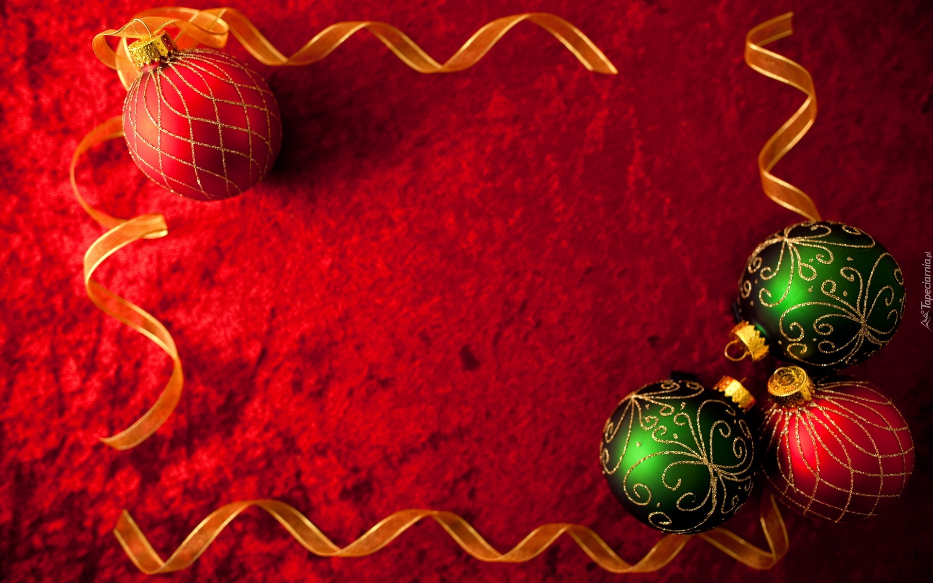 Edytor tapety: Czerwona, Tkanina, Bombki, Wstążka