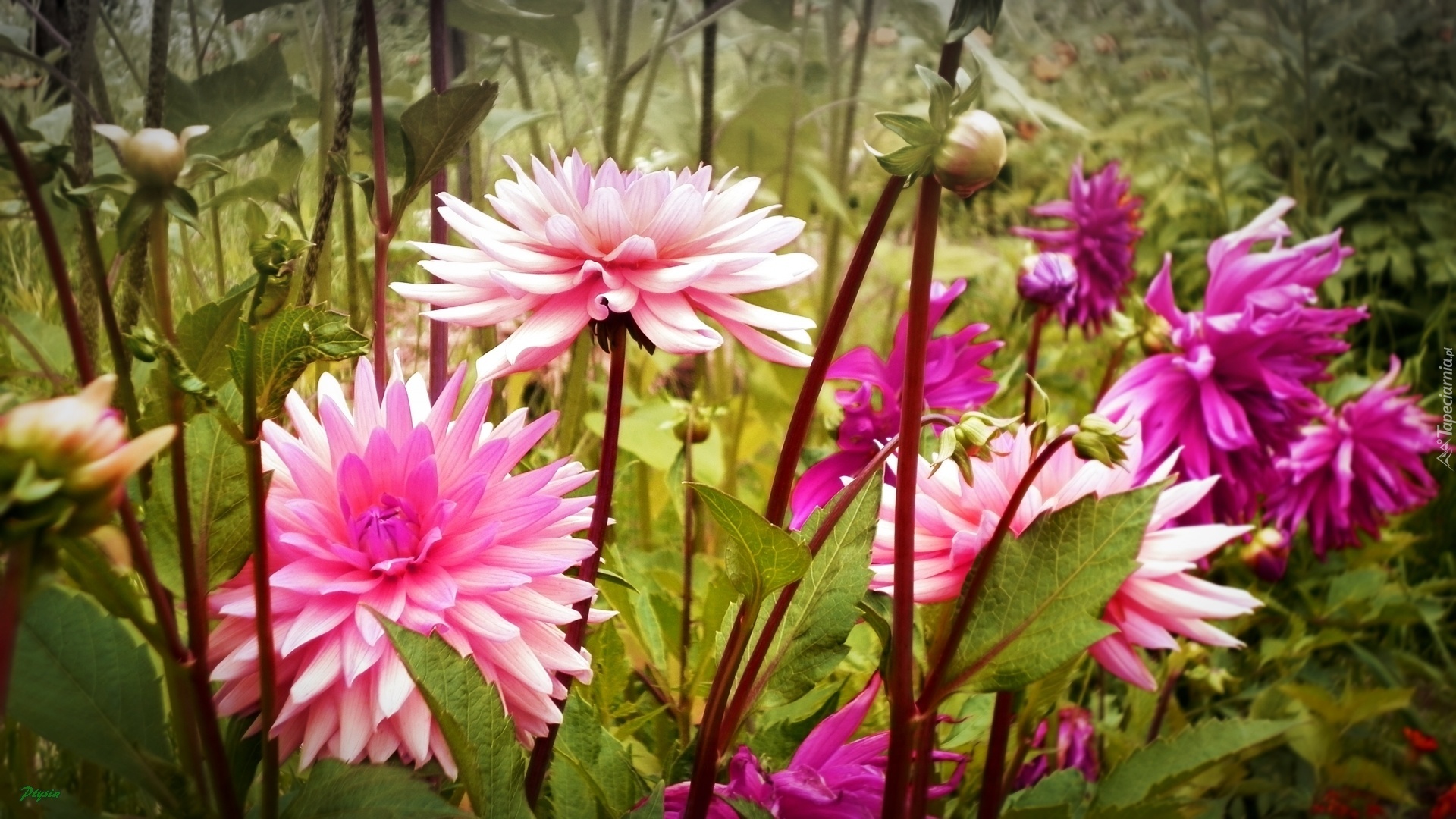 Edytor tapety: Dalie, Różowe, Łodygi