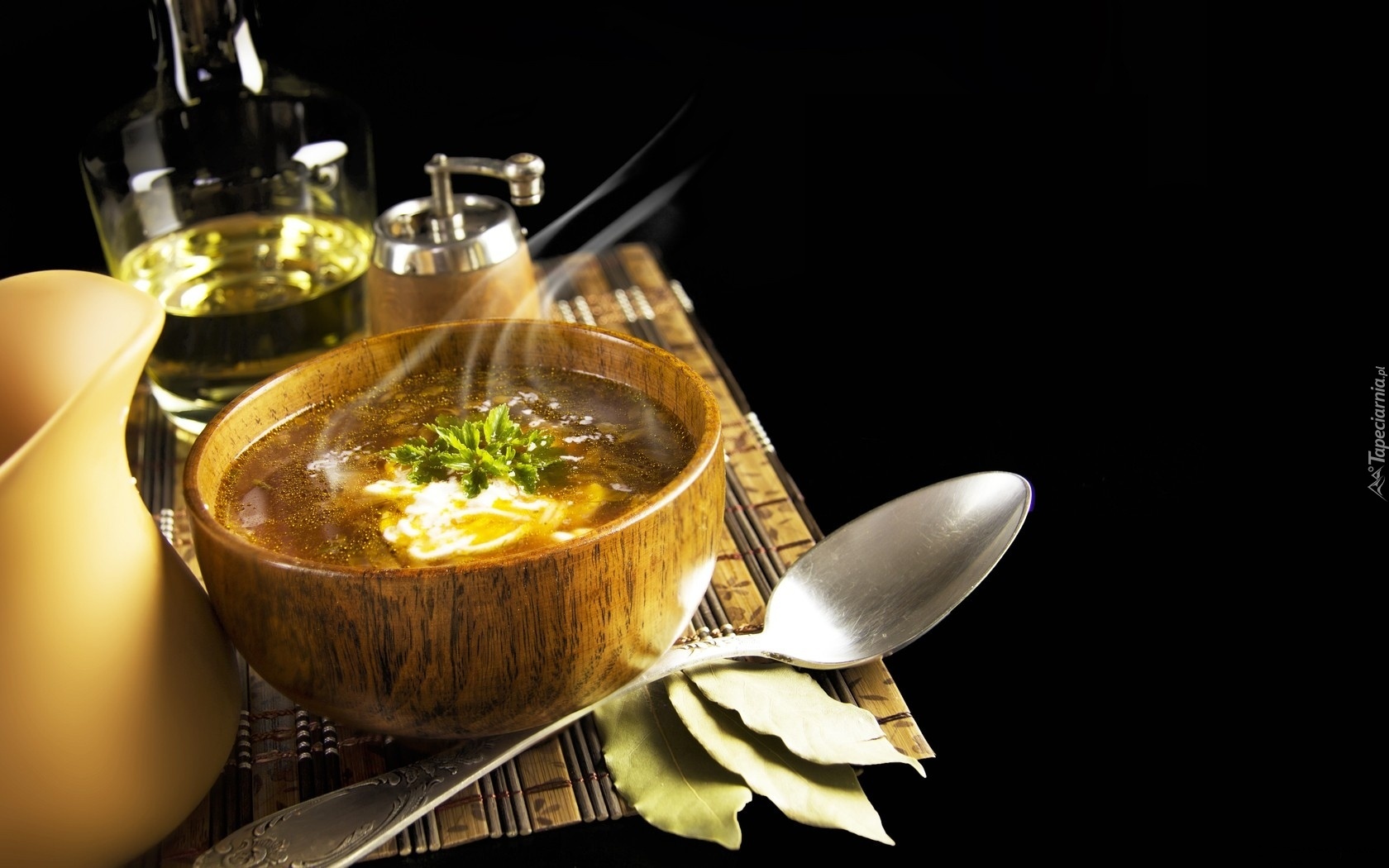 Edytor tapety: Miseczka, Gorąca, Zupa, Łyżka