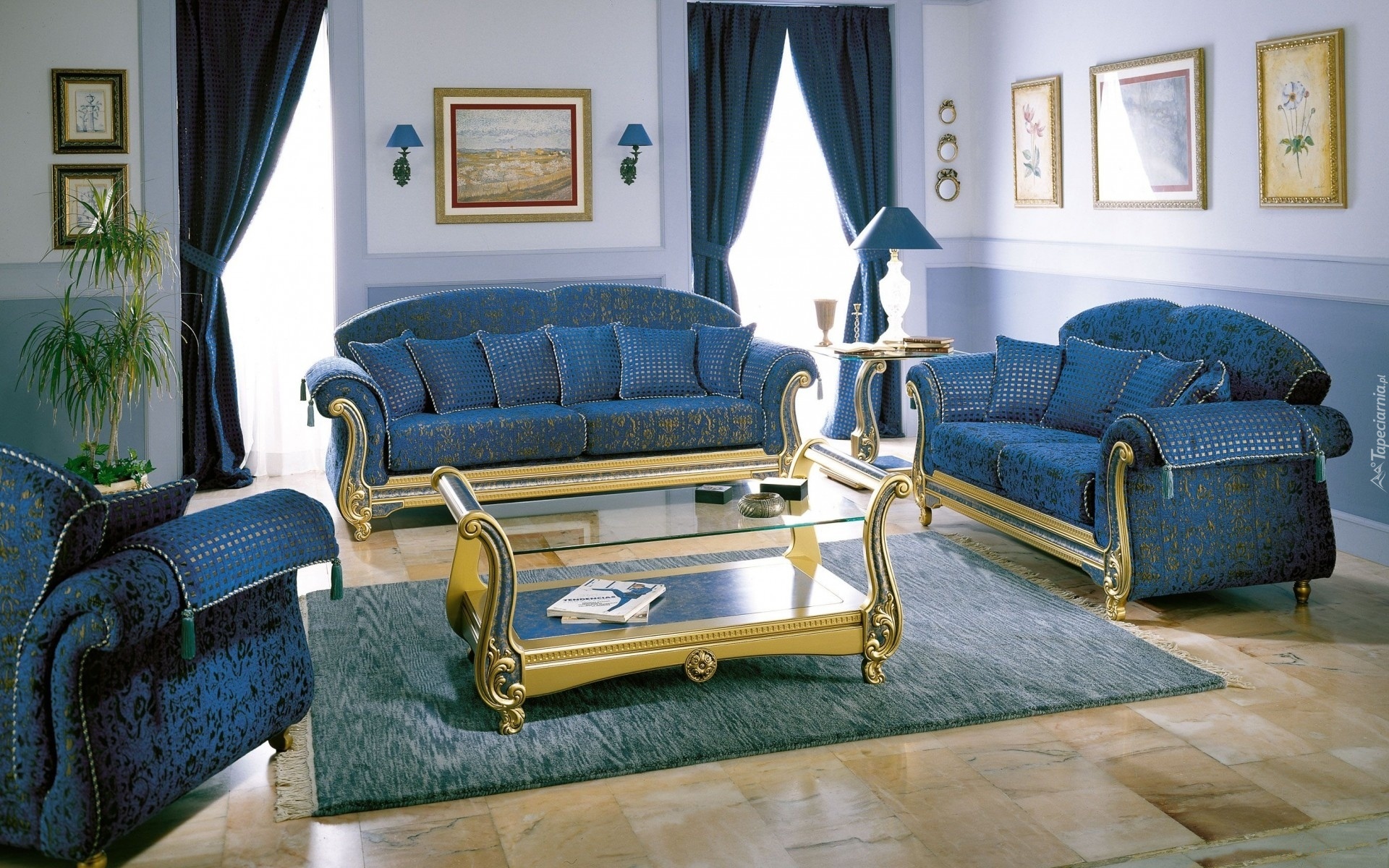 Edytor tapety: Salon, Gościnny, Niebieskie, Meble