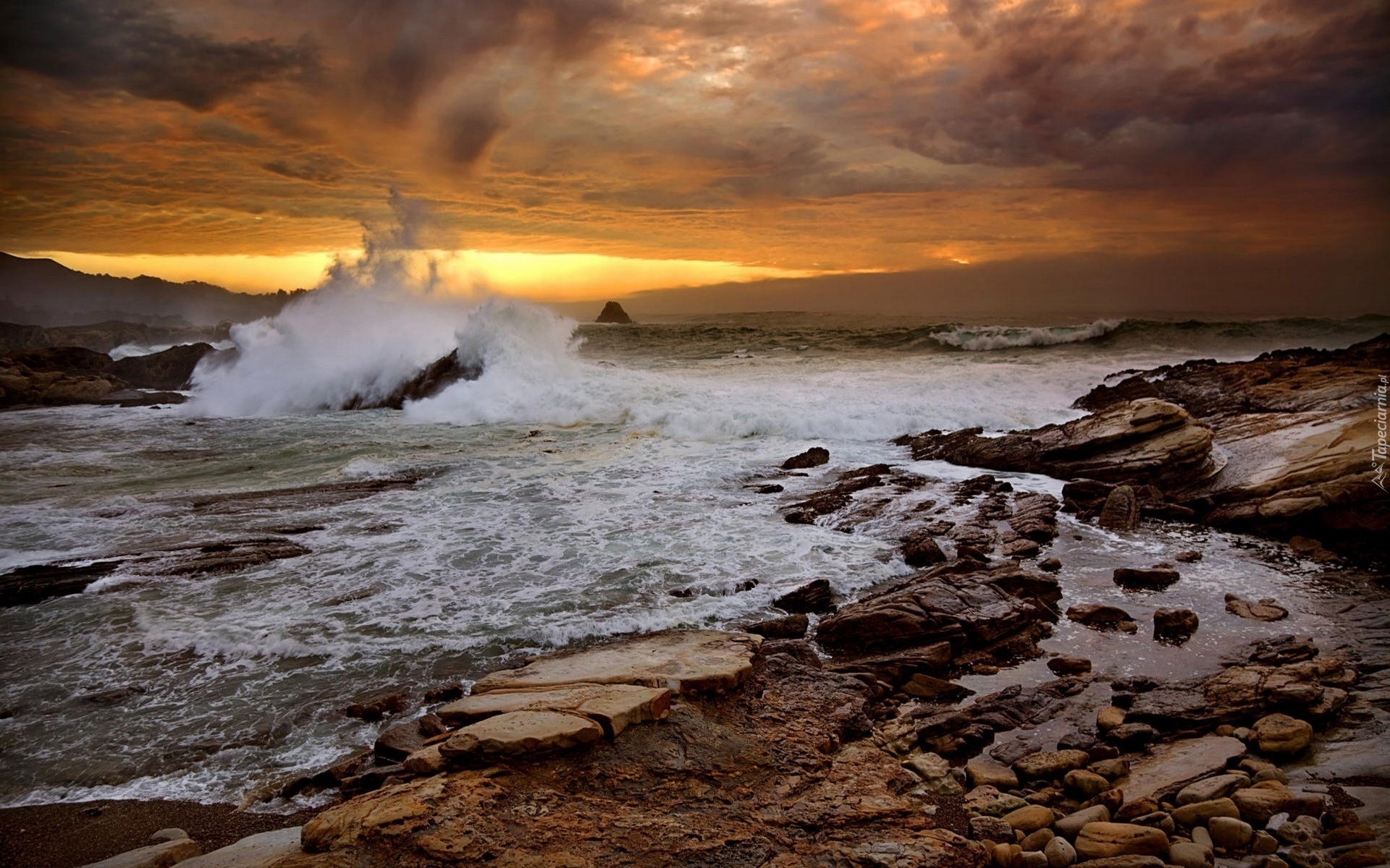 Edytor tapety: Wzburzone, Fale, Kamienie