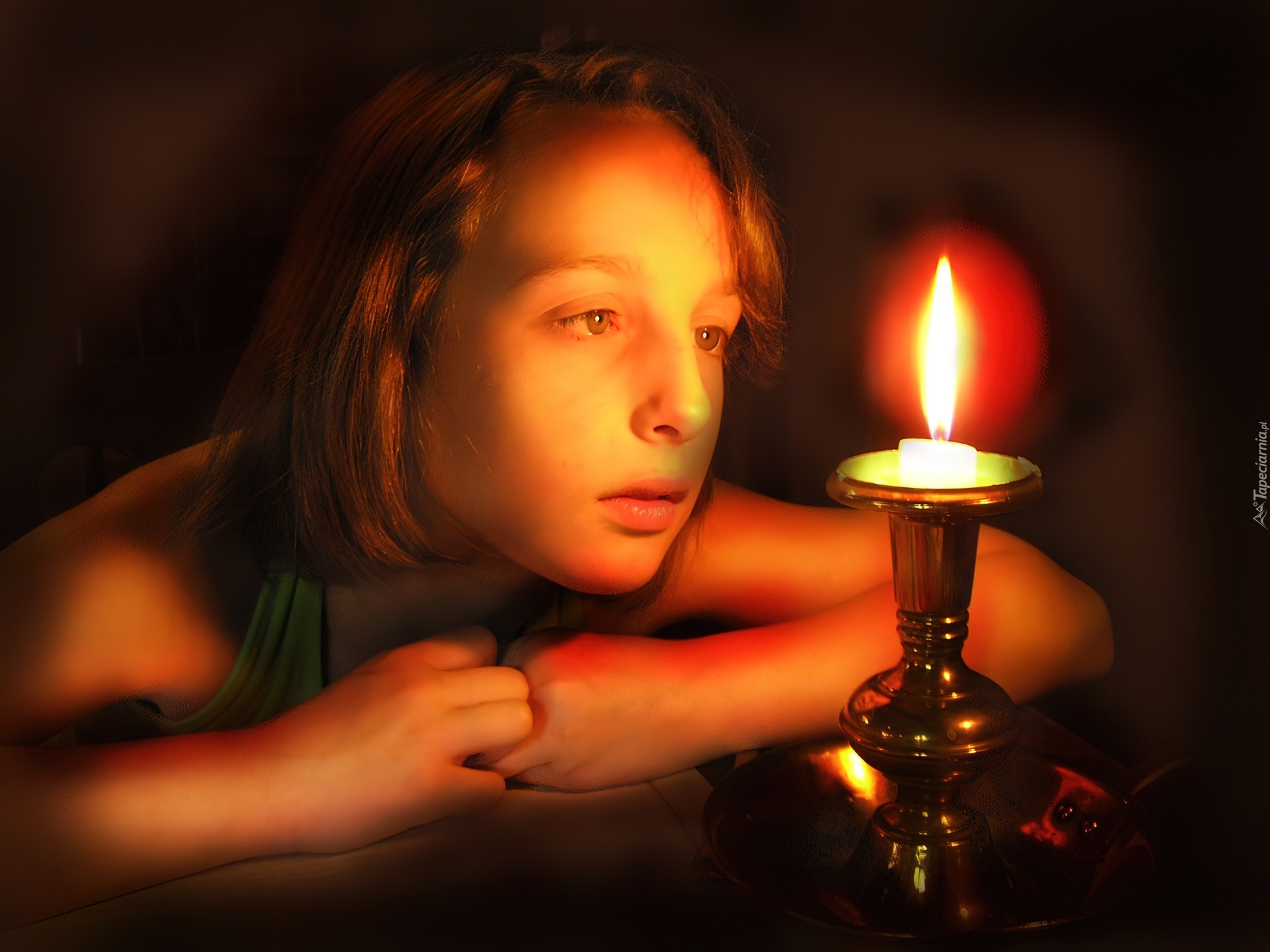 Edytor tapety: Dziewczynka, Świeca, Ogień