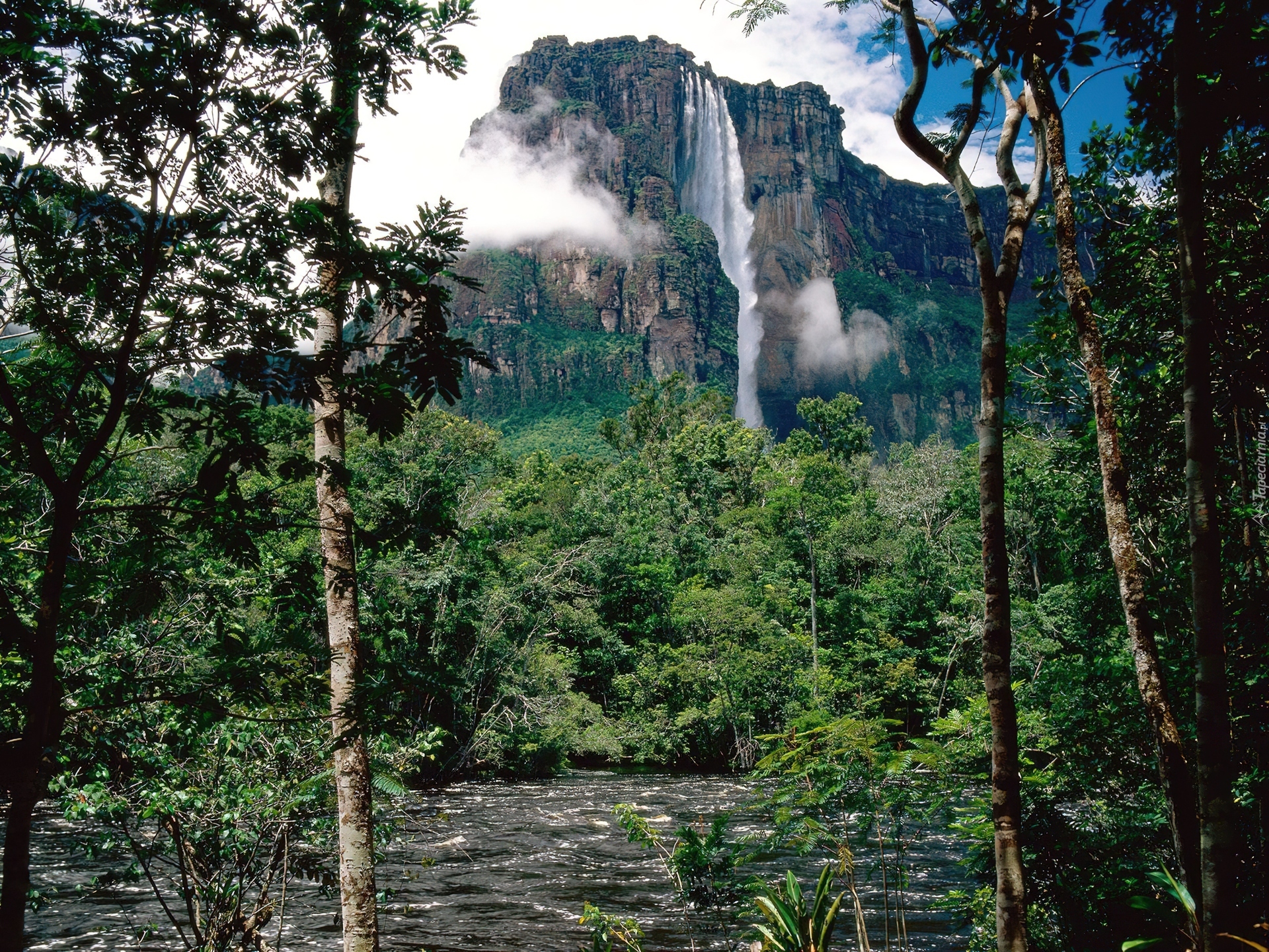 Edytor tapety: Orinoko, Wodospad, Drzewa, Zieleń