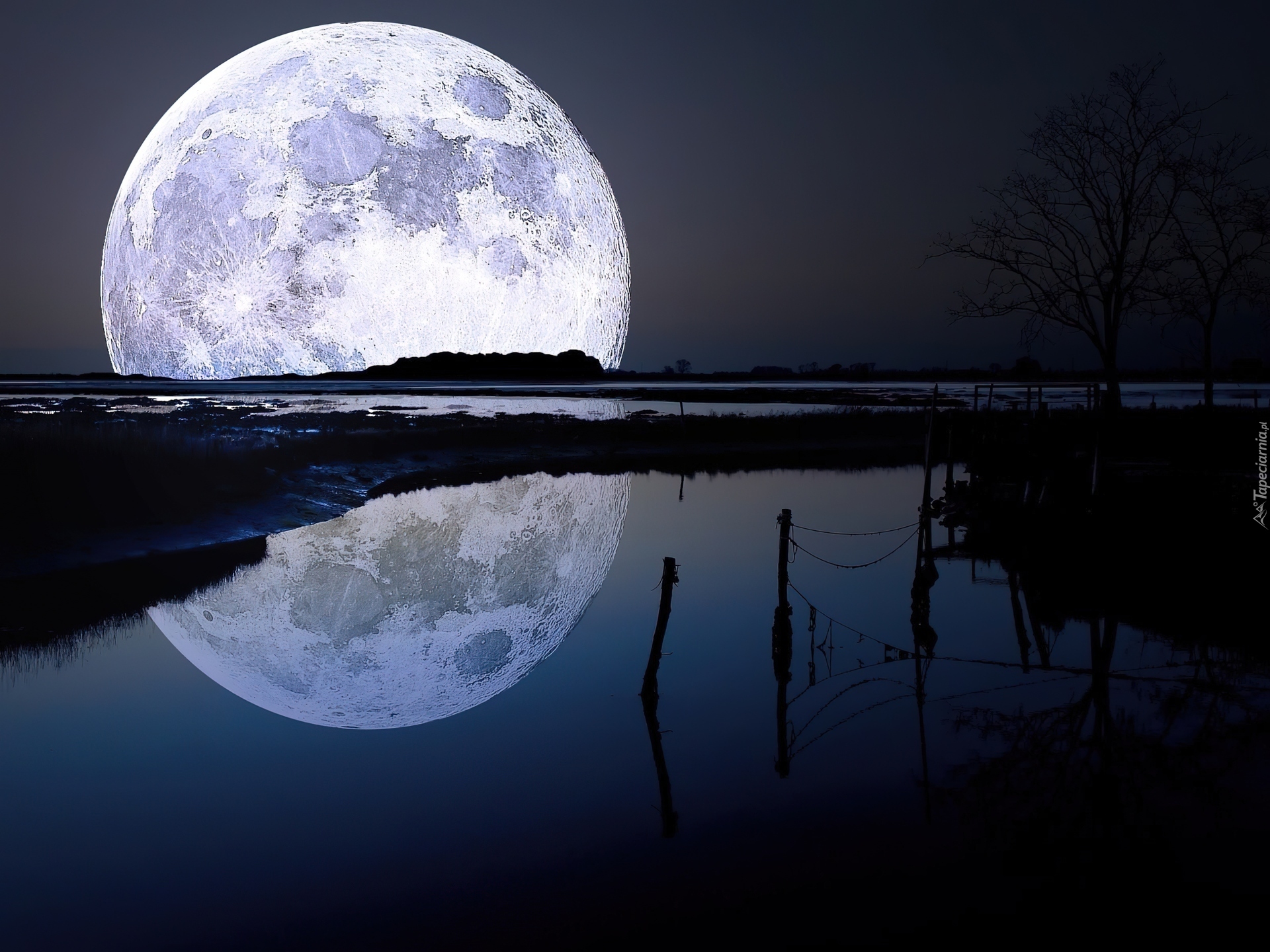 Edytor tapety: Jezioro, Księżyc, Odbicie