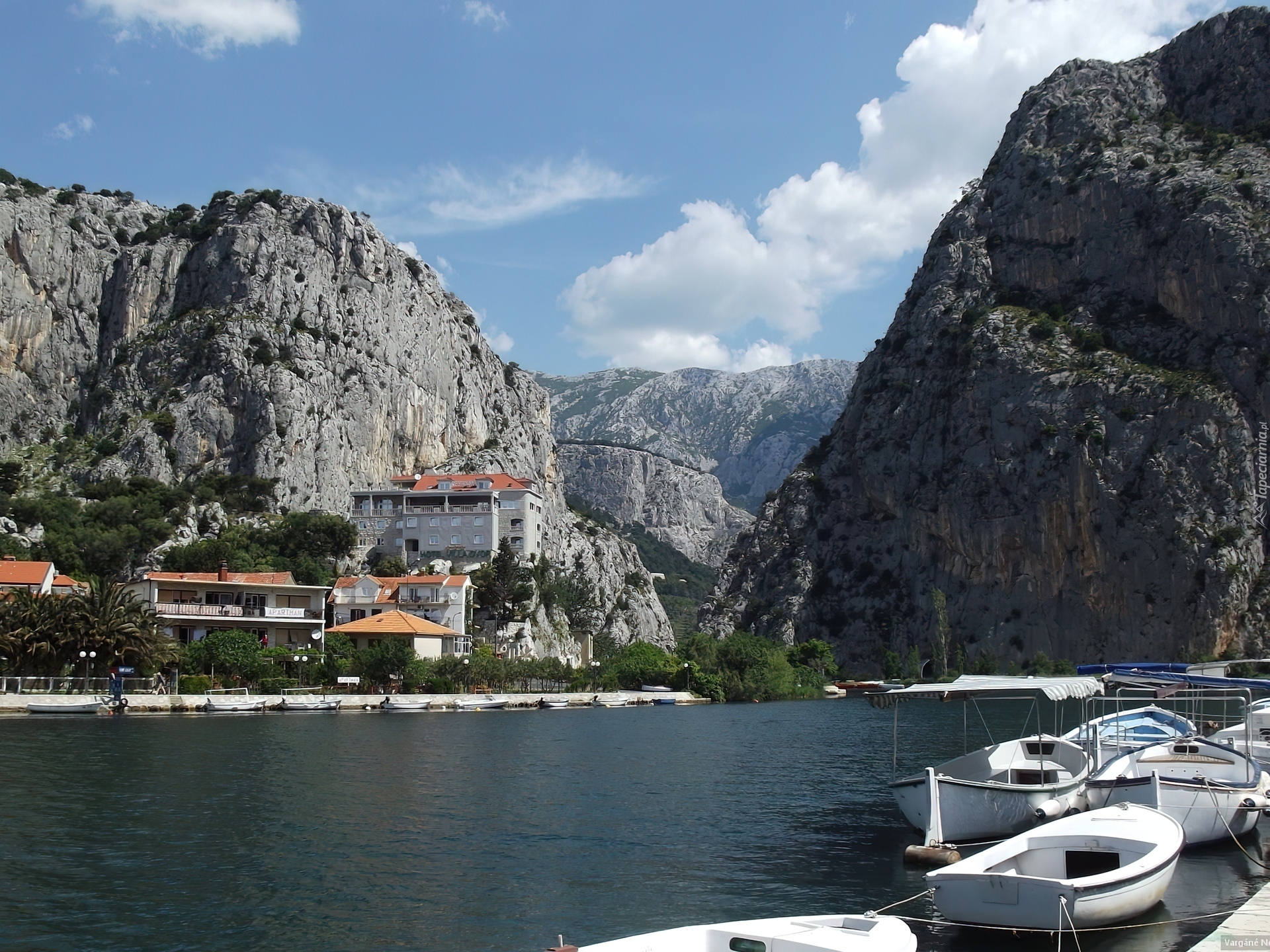 Edytor tapety: Góry, Domy, Łódki