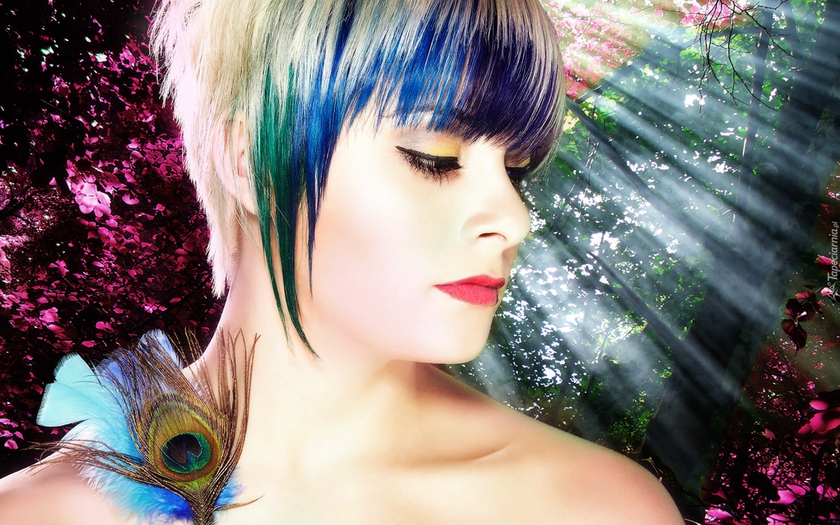 Edytor tapety: Kobieta, Kolorowe, Pasemka, Włosów