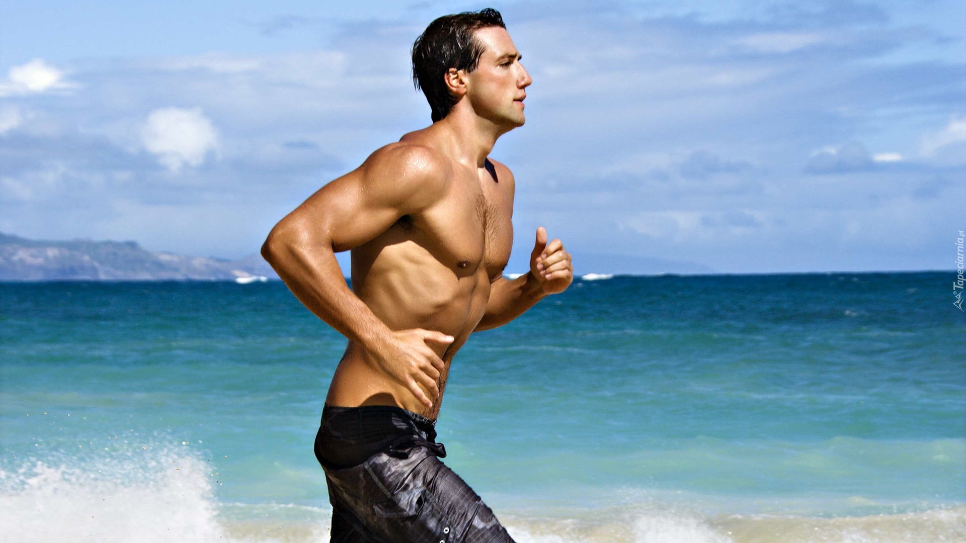 Edytor tapety: Biegnący, Mężczyzna, Morze, Niebo