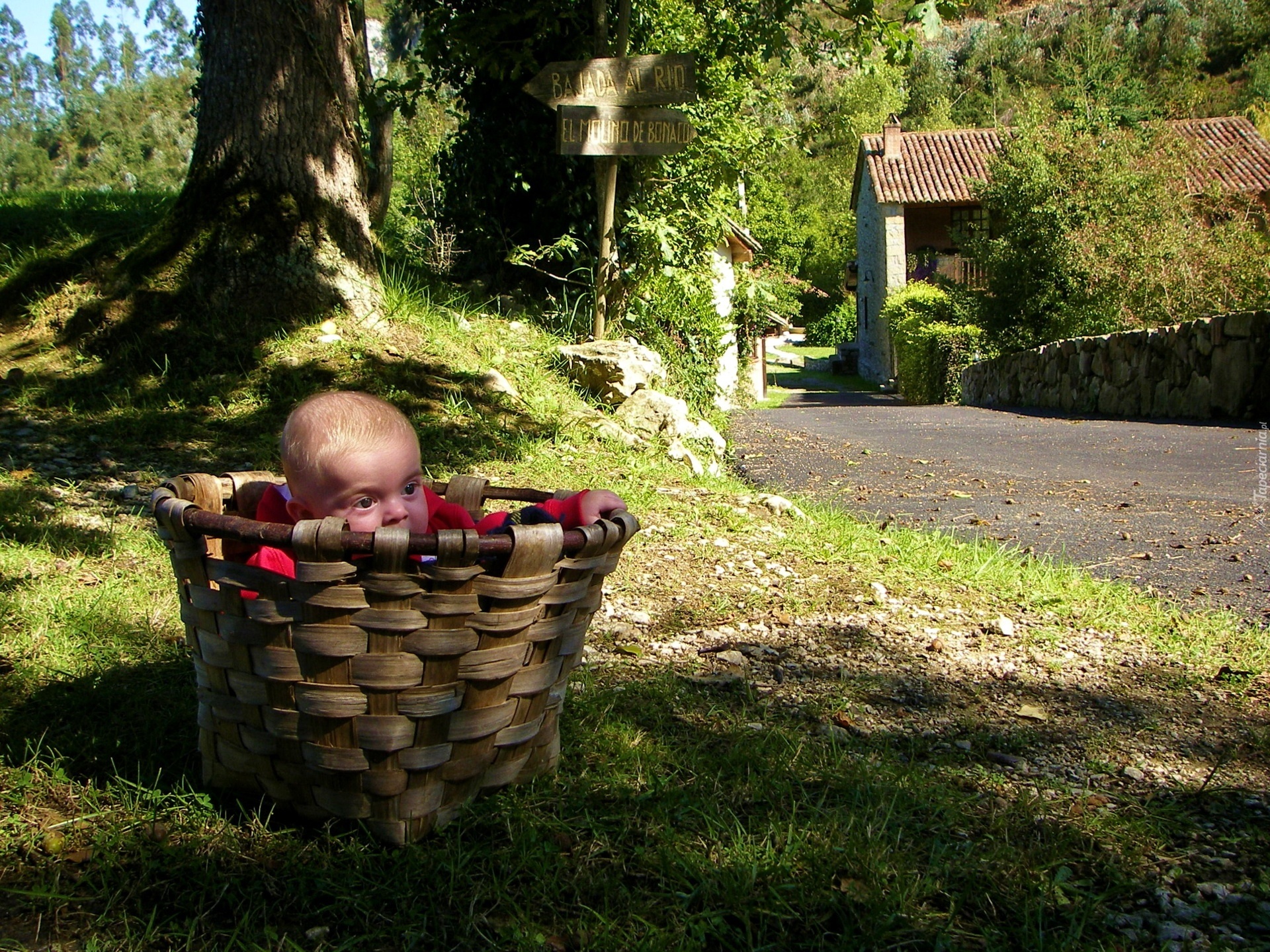Edytor tapety: Koszyk, Dziecko, Droga