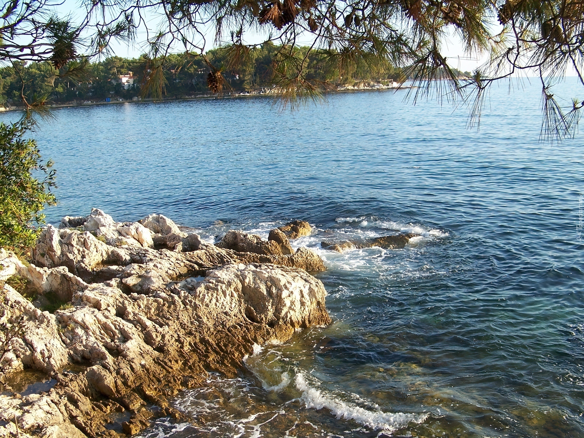 Edytor tapety: Jezioro, Skały, Drzewa