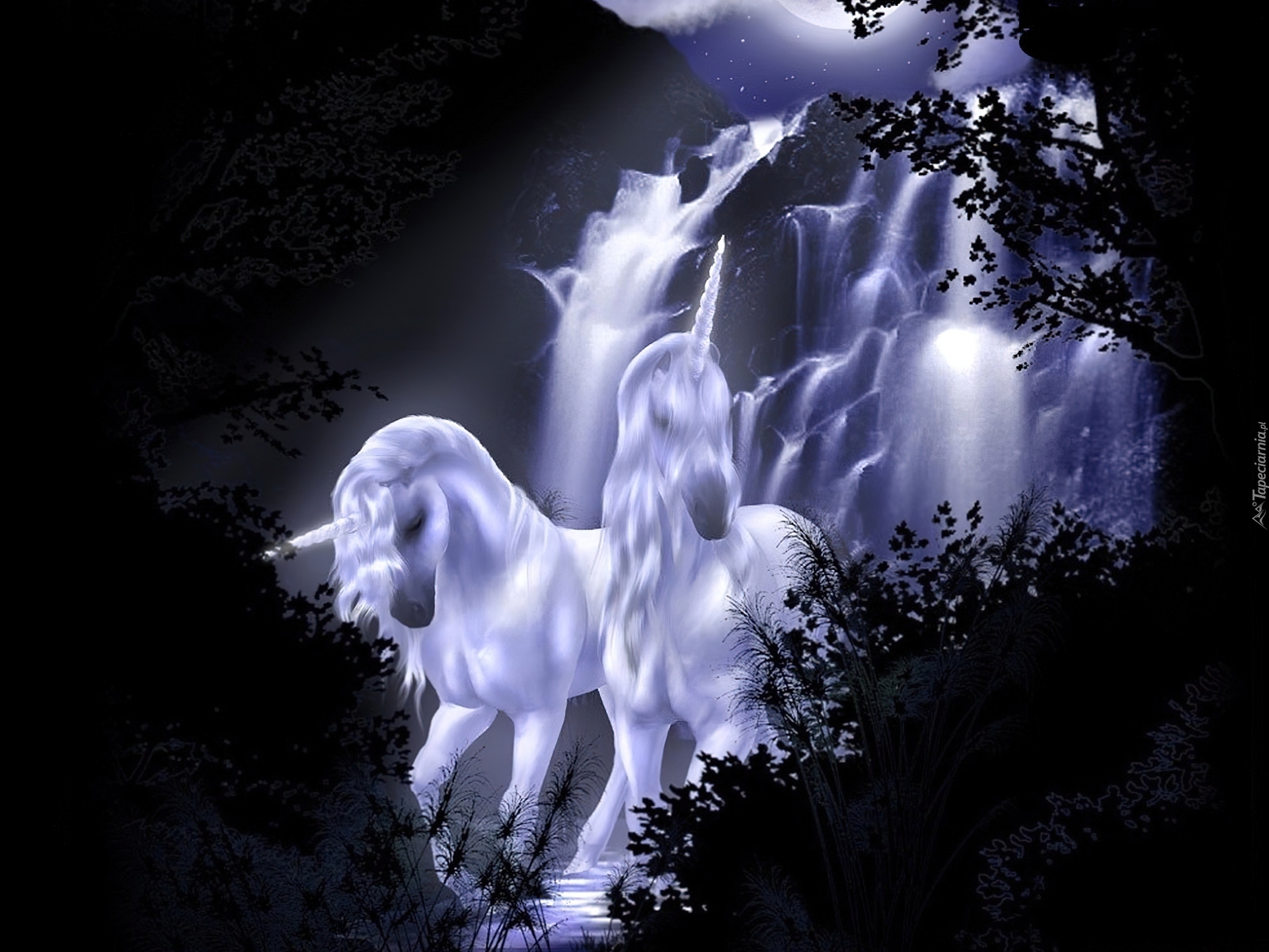 Edytor tapety: Jednorożce, Wodospad, Noc