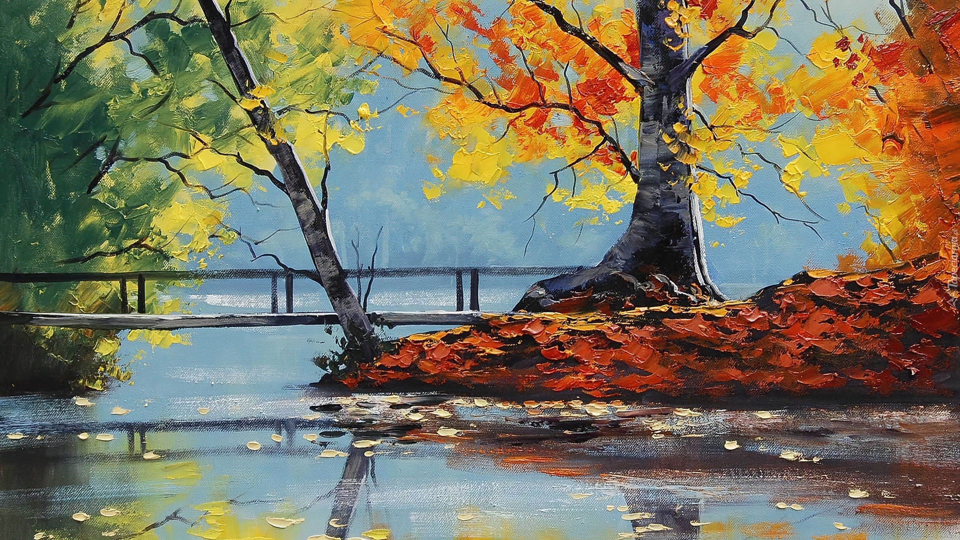 Edytor tapety: Jesień, Woda, Mostek, Liście