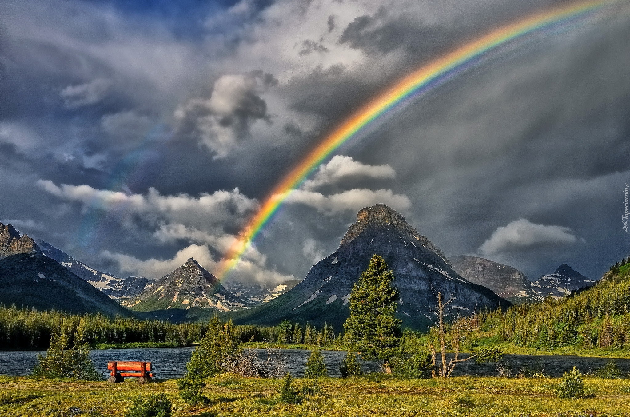 Edytor tapety: Góry, Tęcza, Rzeka