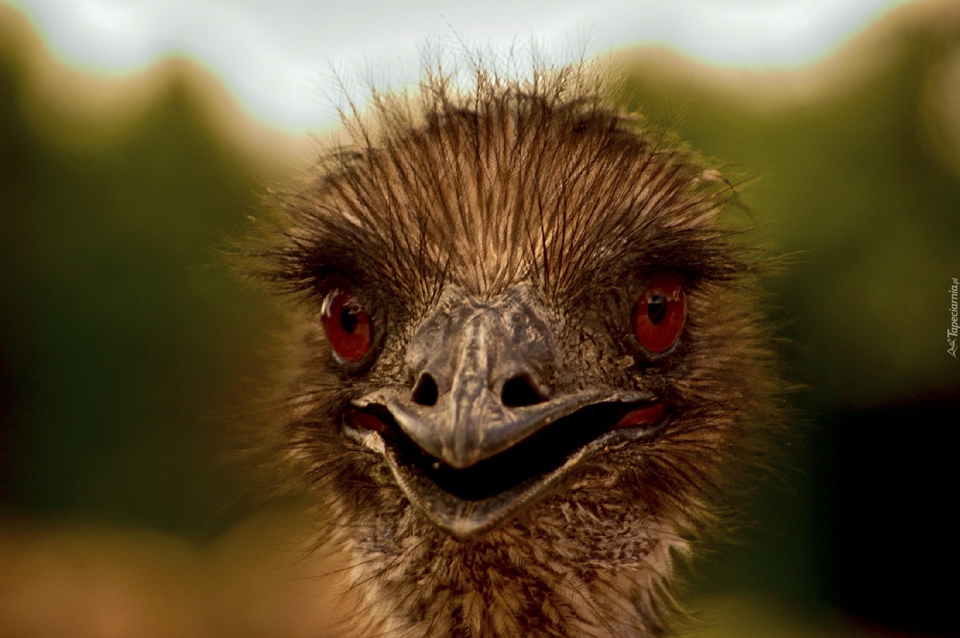 Edytor tapety: Struś, Głowa, Czerwone, Oczy
