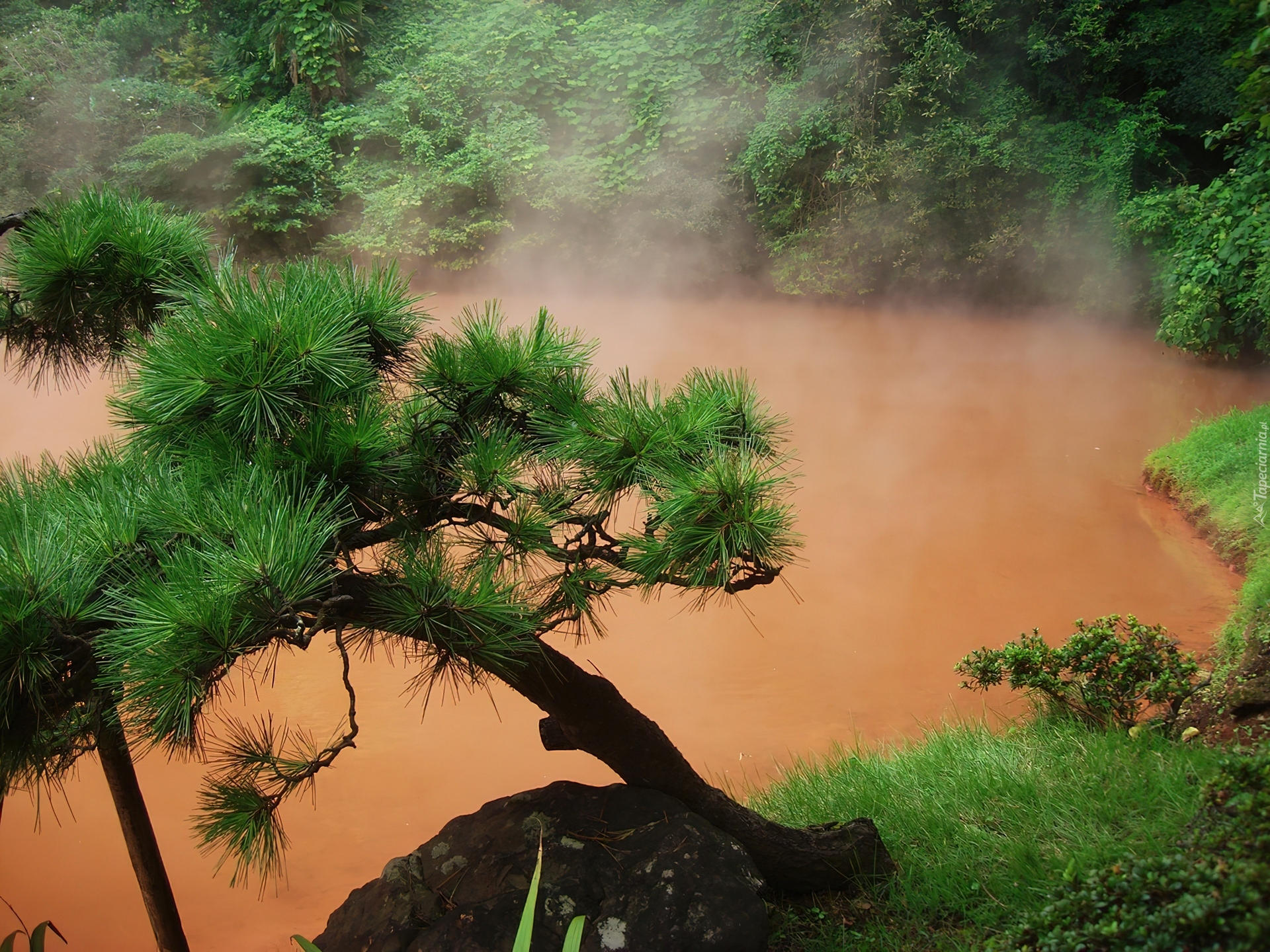 Edytor tapety: Mgła, Woda, Drzewa, Zieleń