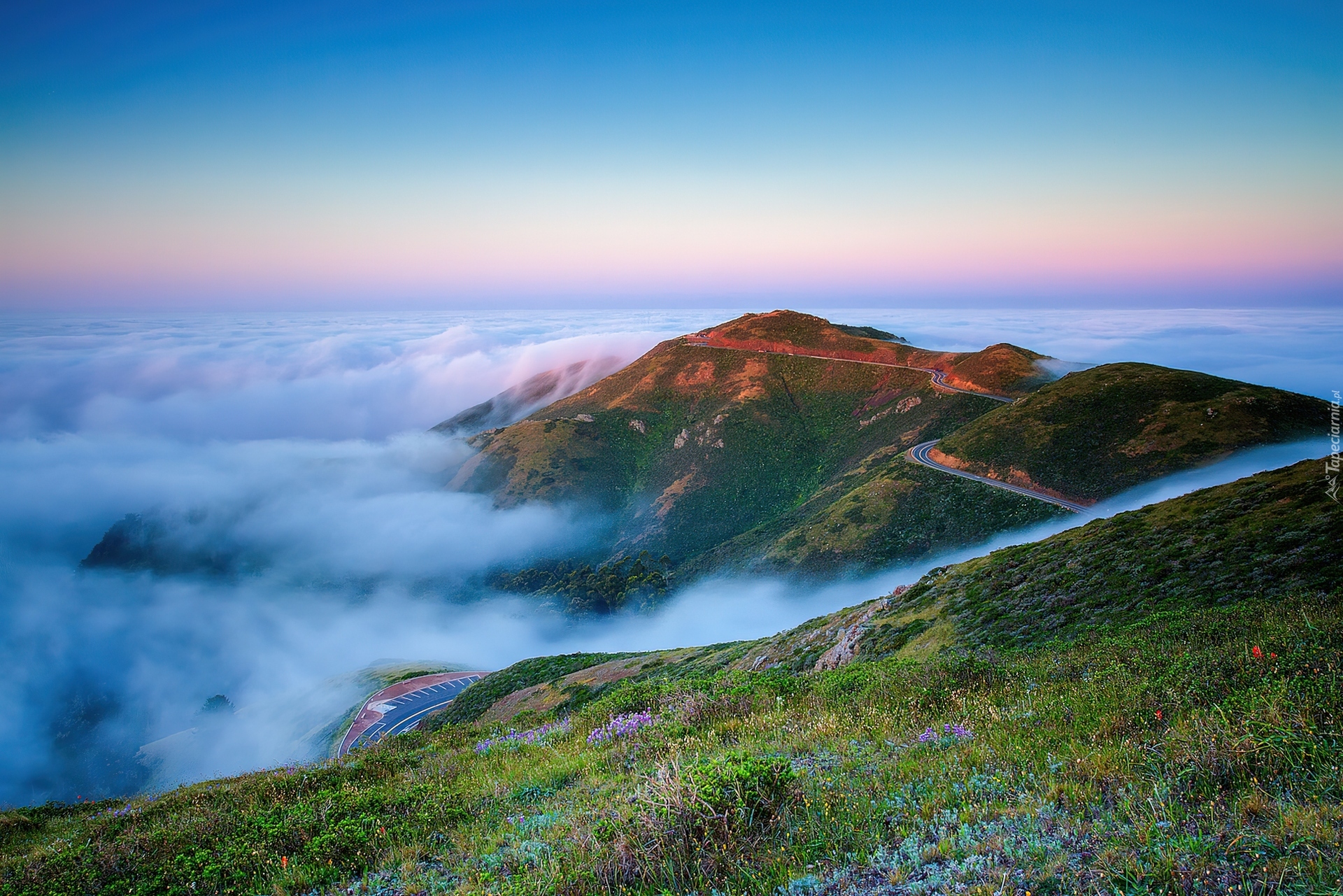 Edytor tapety: Mgła, Góry, Droga, Niebo