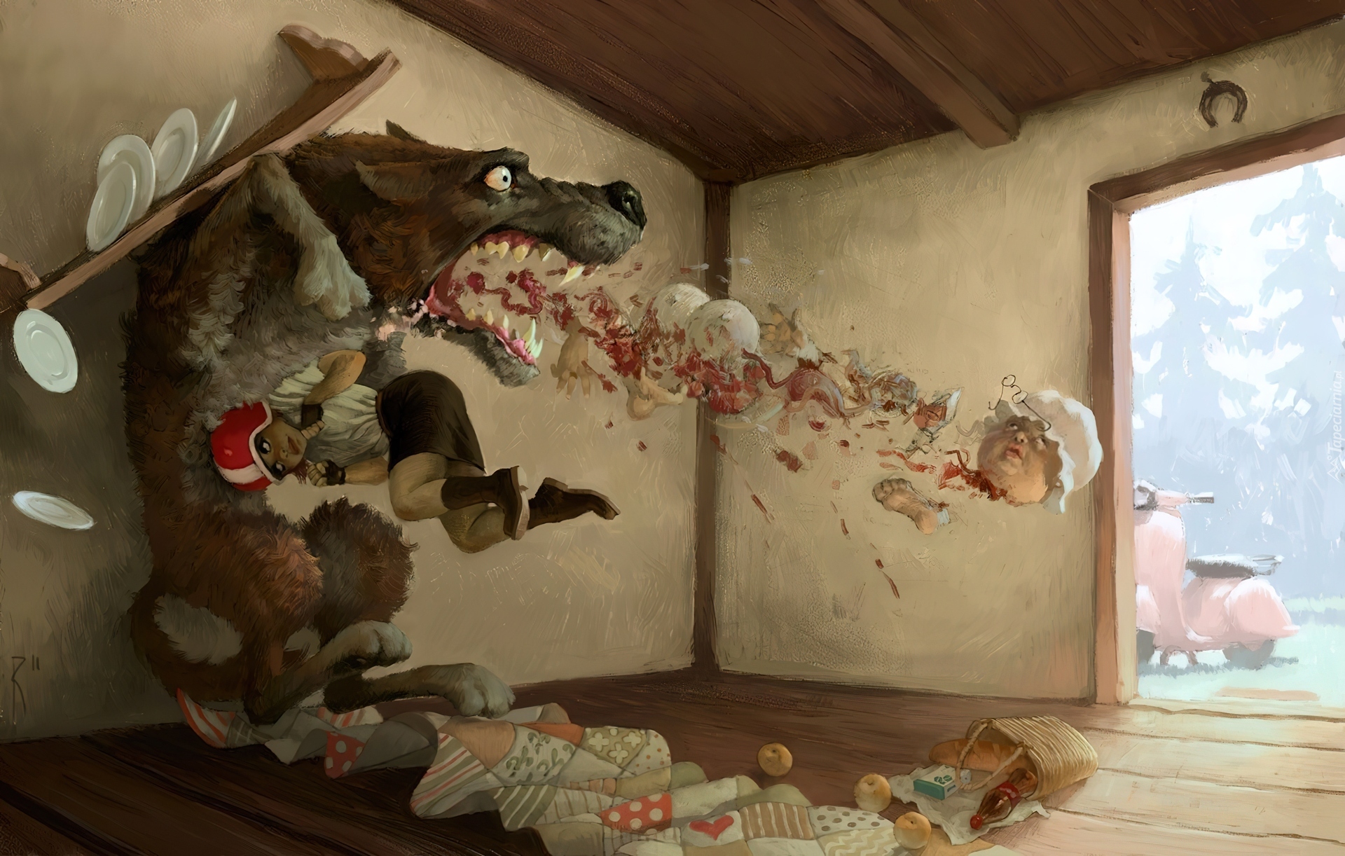 Edytor tapety: Wilk, Czerwony, Kapturek, Walka