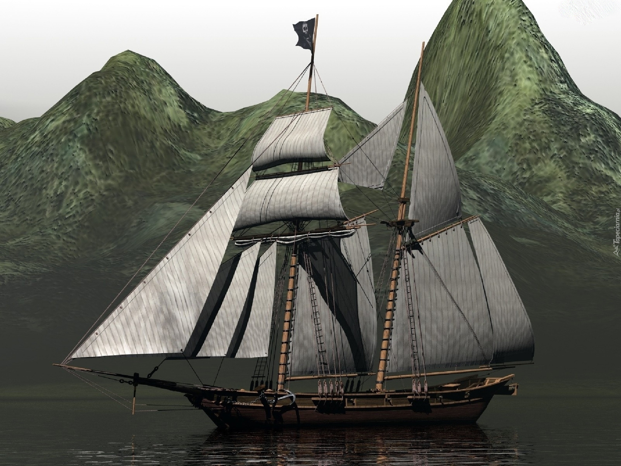 Edytor tapety: Żaglowiec, Góry, Woda