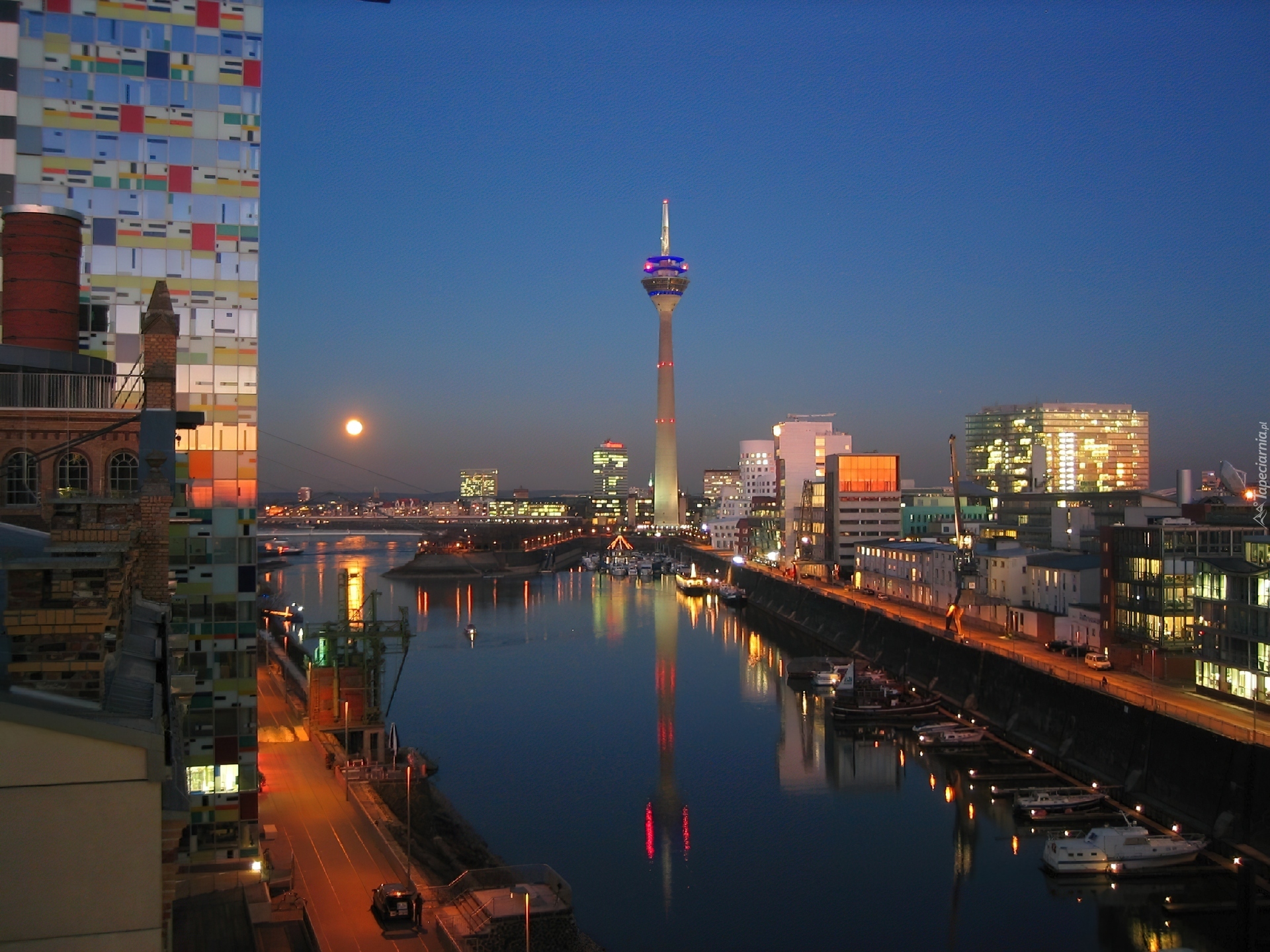 Edytor tapety: Dusseldorf, Port, Noc
