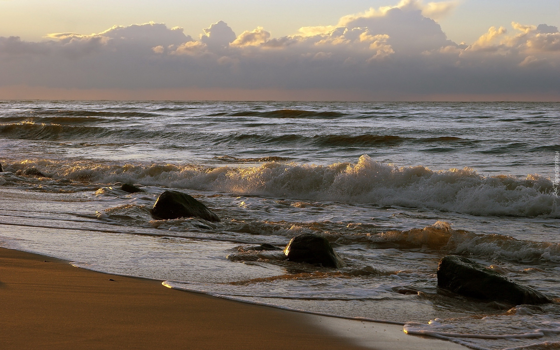 Edytor tapety: Woda, Kamienie, Piasek, Chmury