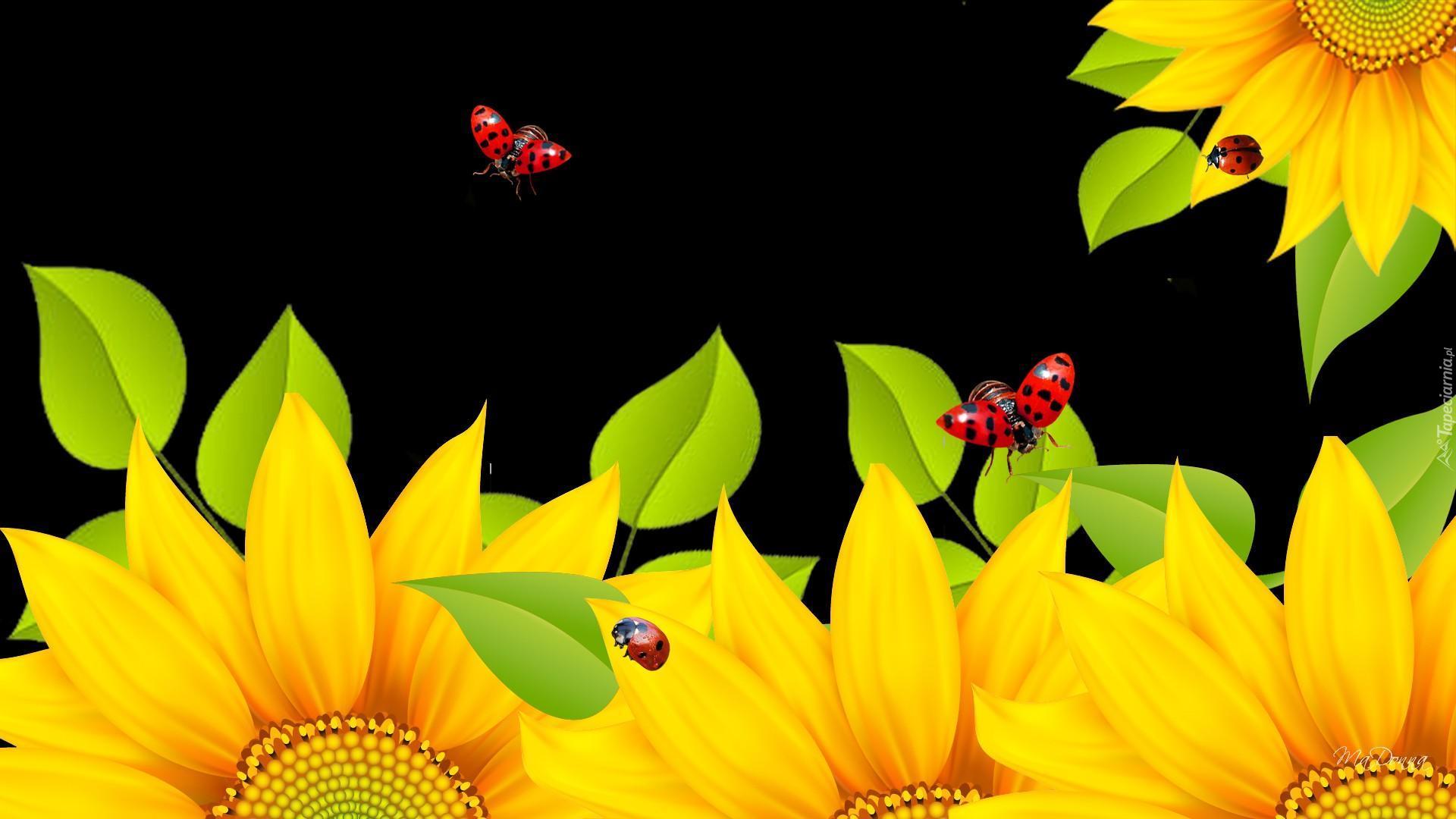 Edytor tapety: Słoneczniki, Biedronki, Art