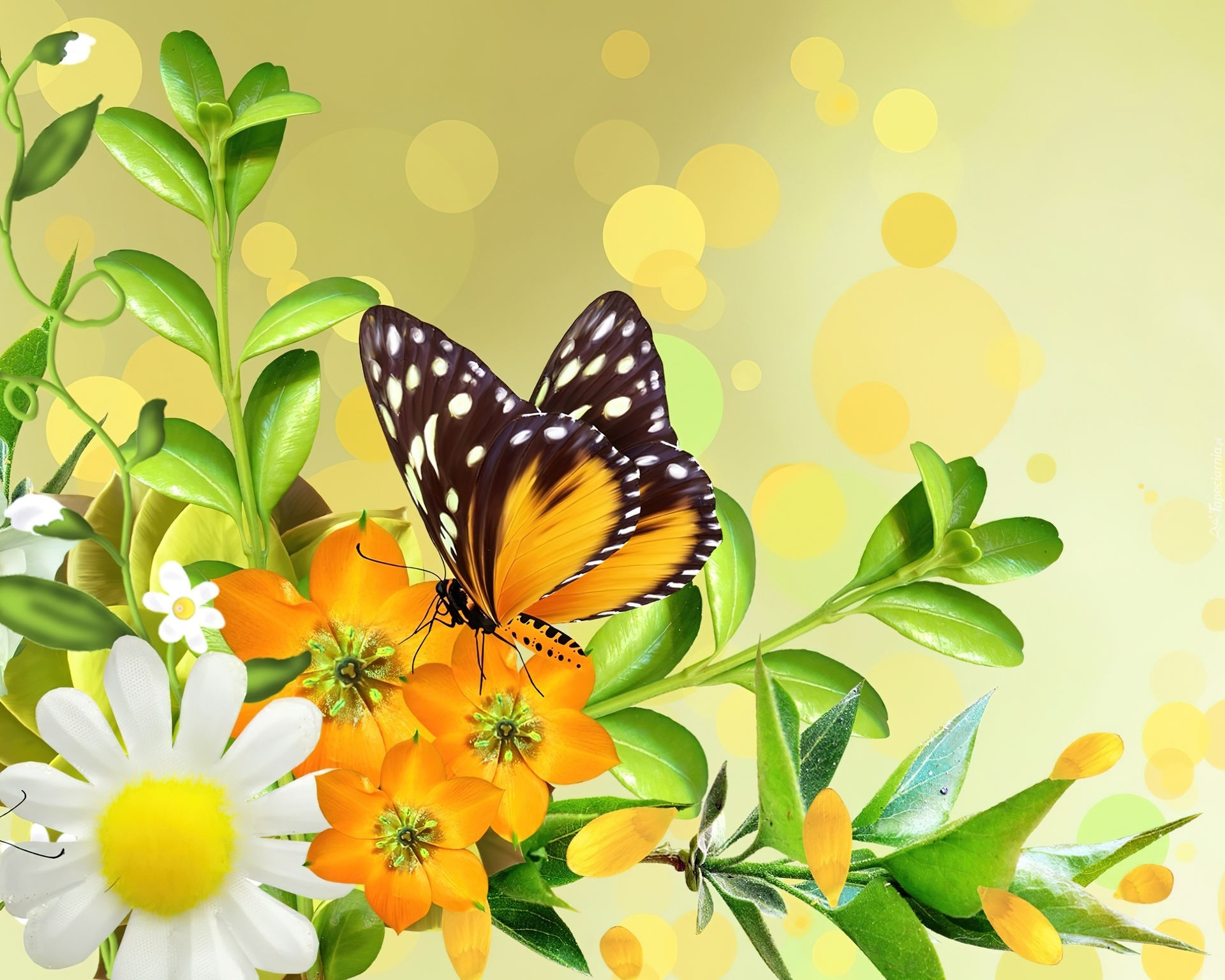 Edytor tapety: Żółte, Kwiaty, Motyl, Art