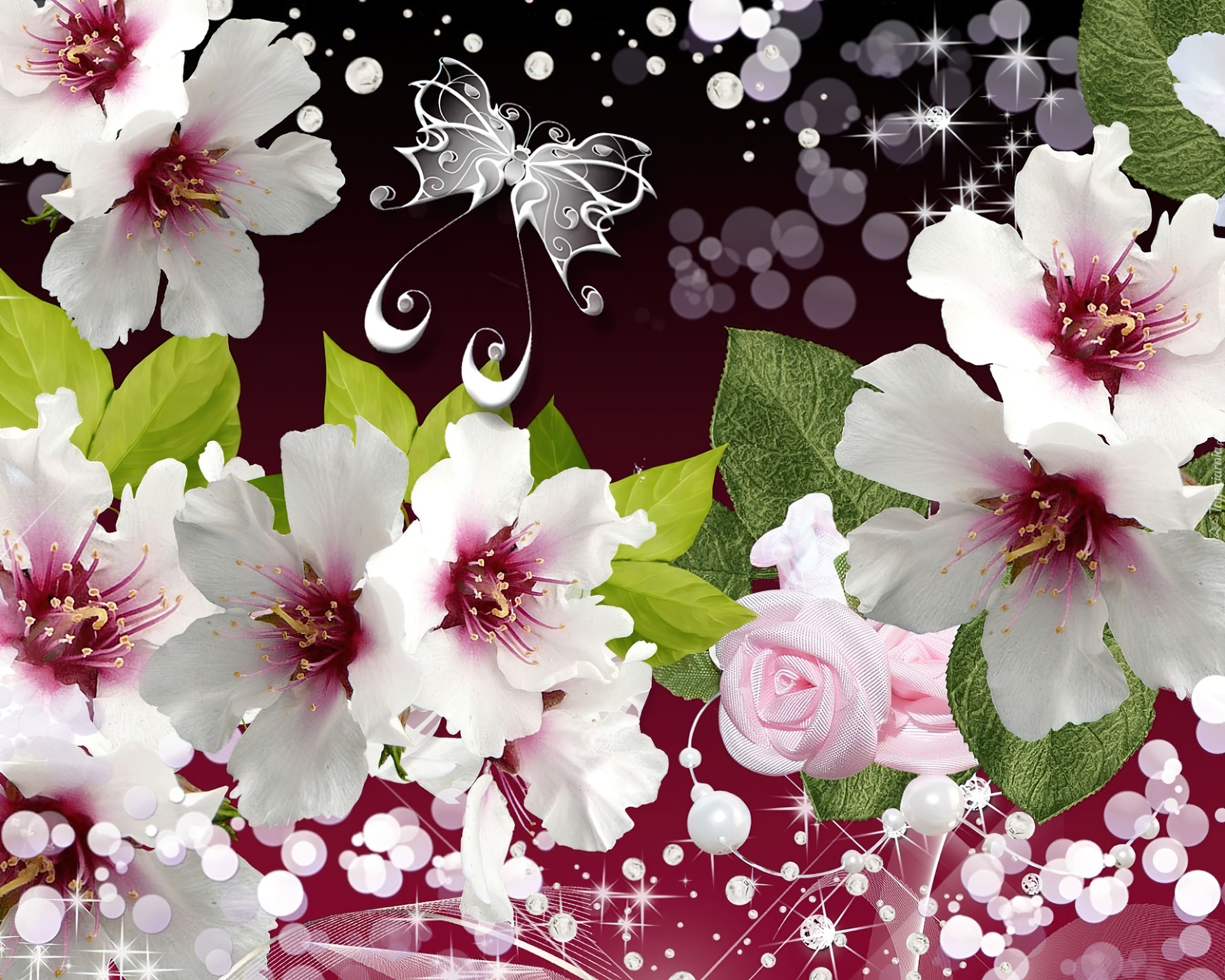 Edytor tapety: Białe, Kwity, Motyl, Art
