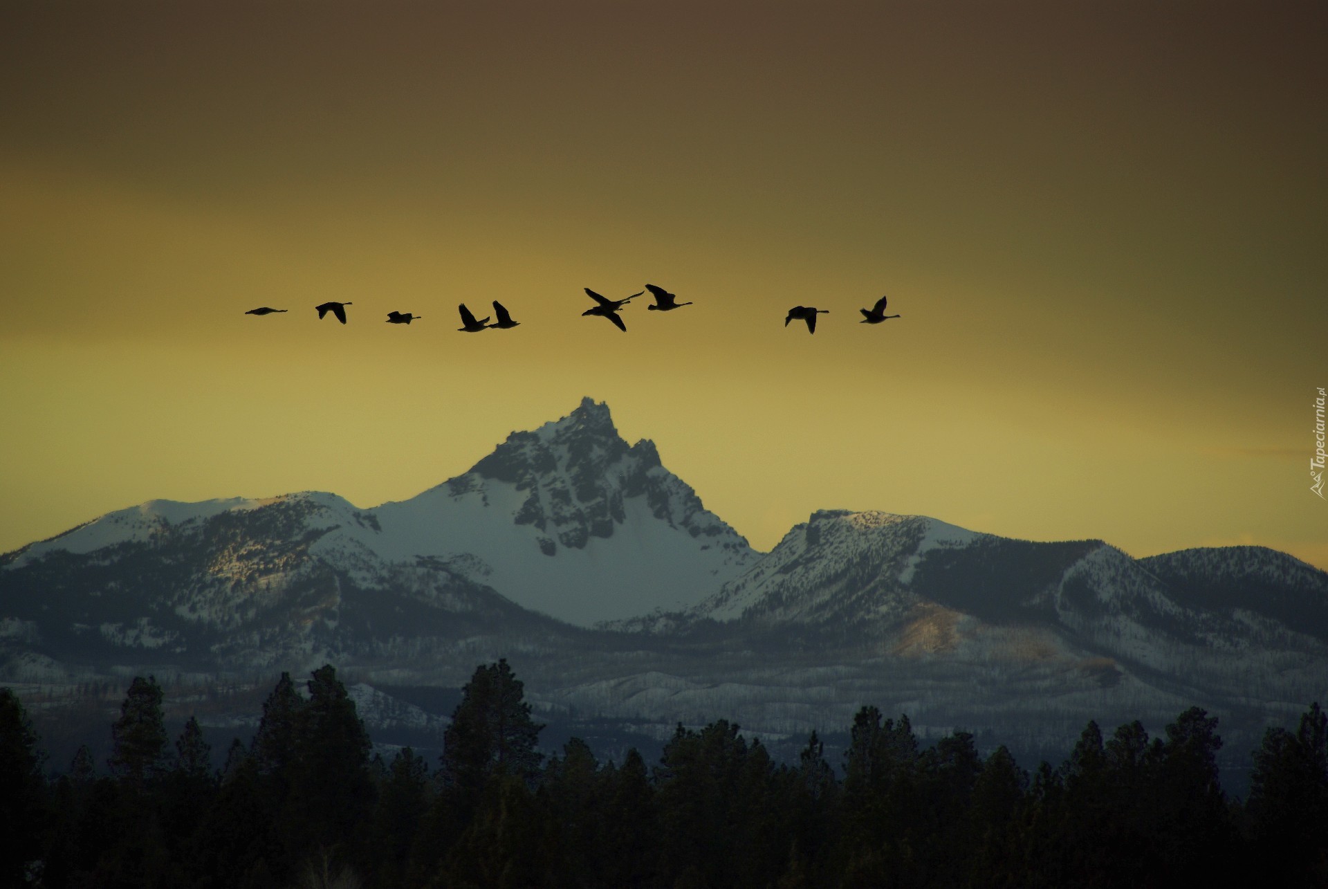 Edytor tapety: Góry, Las, Ptaki