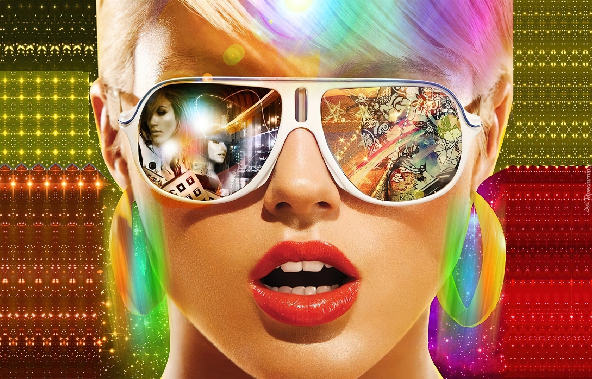 Edytor tapety: Dziewczyna, Kolorowe, Włosy, Okulary, Grafika
