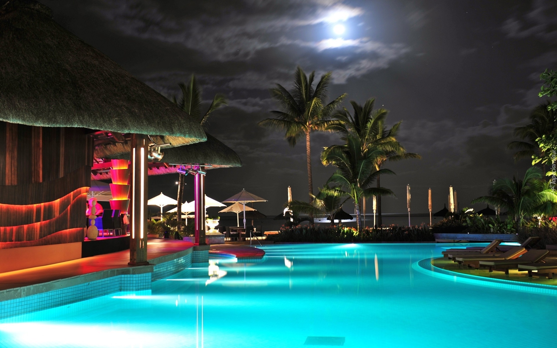Edytor tapety: Basen, Palmy, Domek