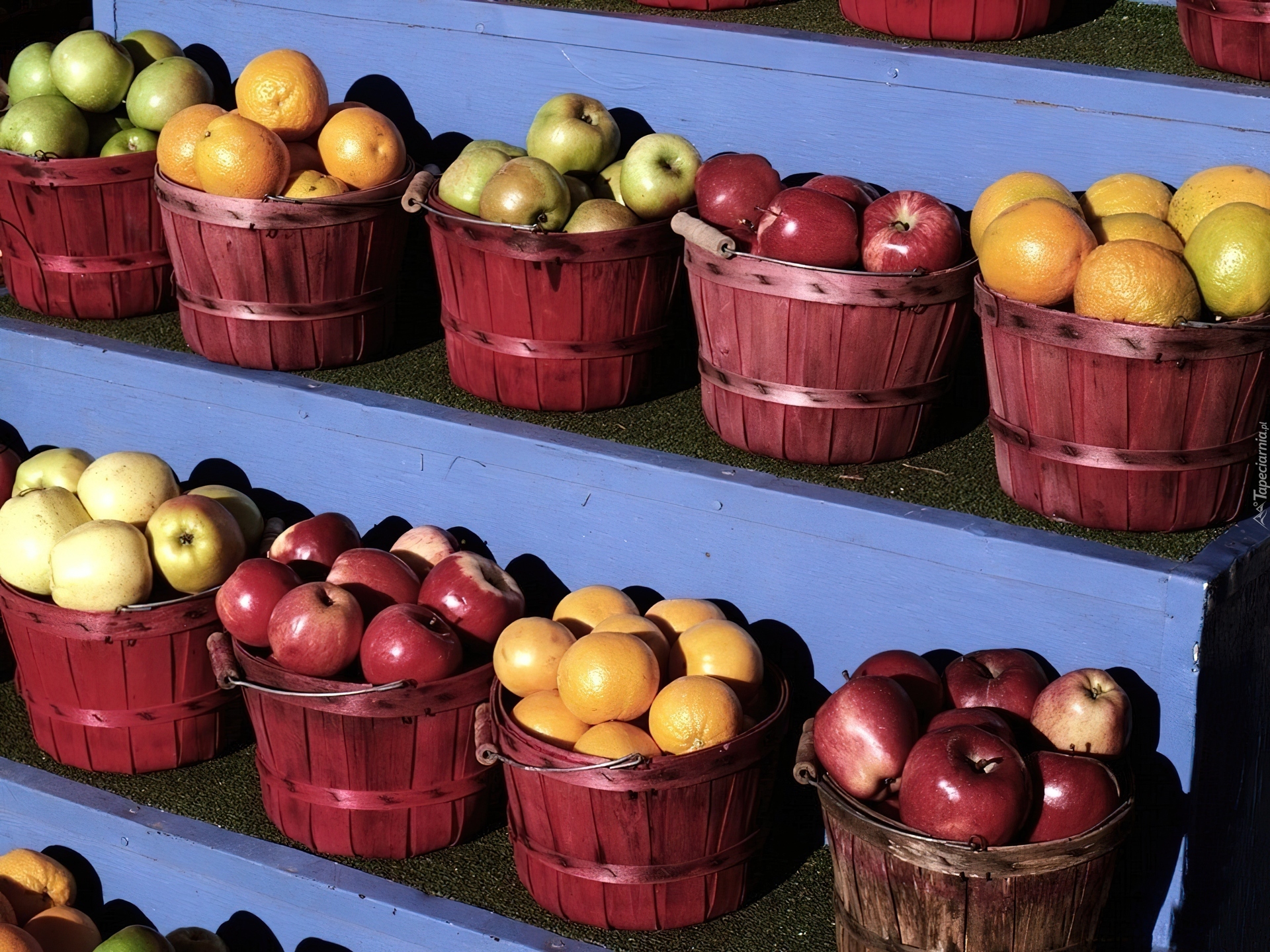 Edytor tapety: Kosze, Pełne, Jabłek, Pomarańczy