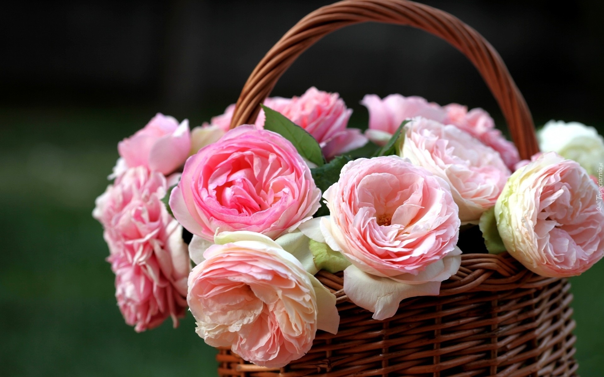 Edytor tapety: Wiklinowy, Kosz, Różowe, Róże