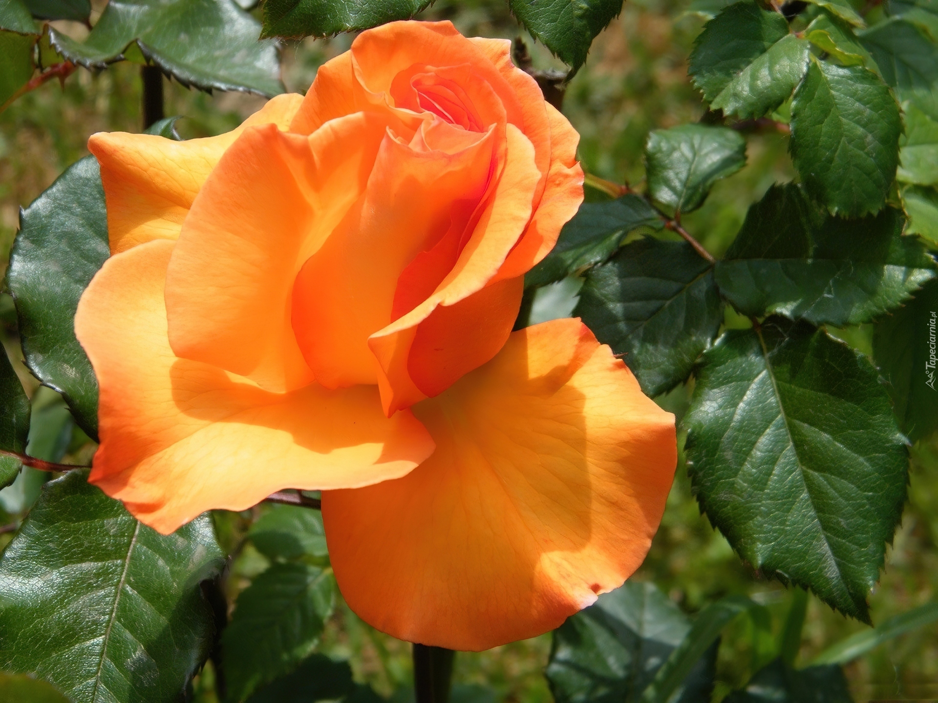 Edytor tapety: Pomarańczowa, Róża, Zielone, Listki