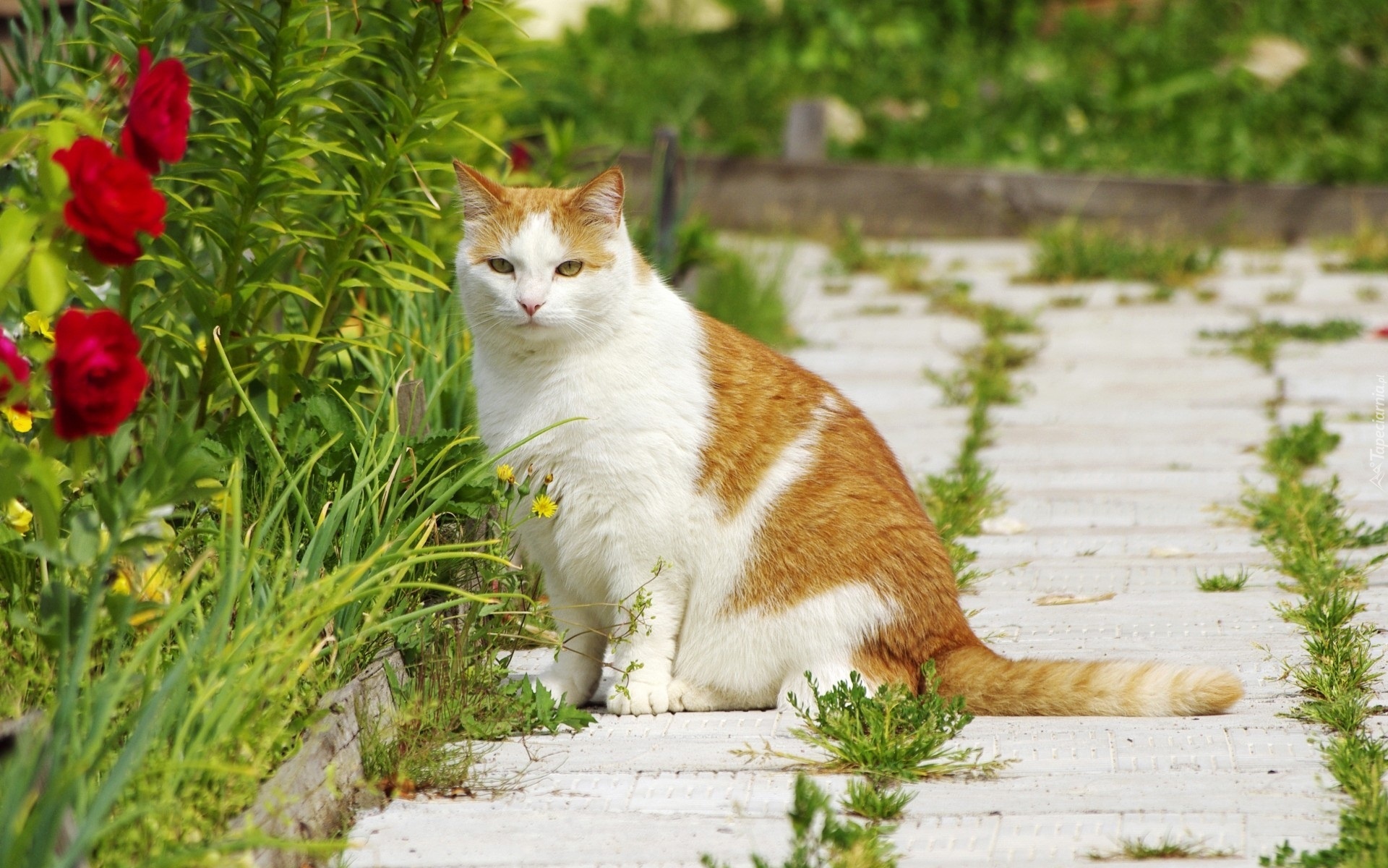 Edytor tapety: Rudy, Kot, Grządka, Kwiaty