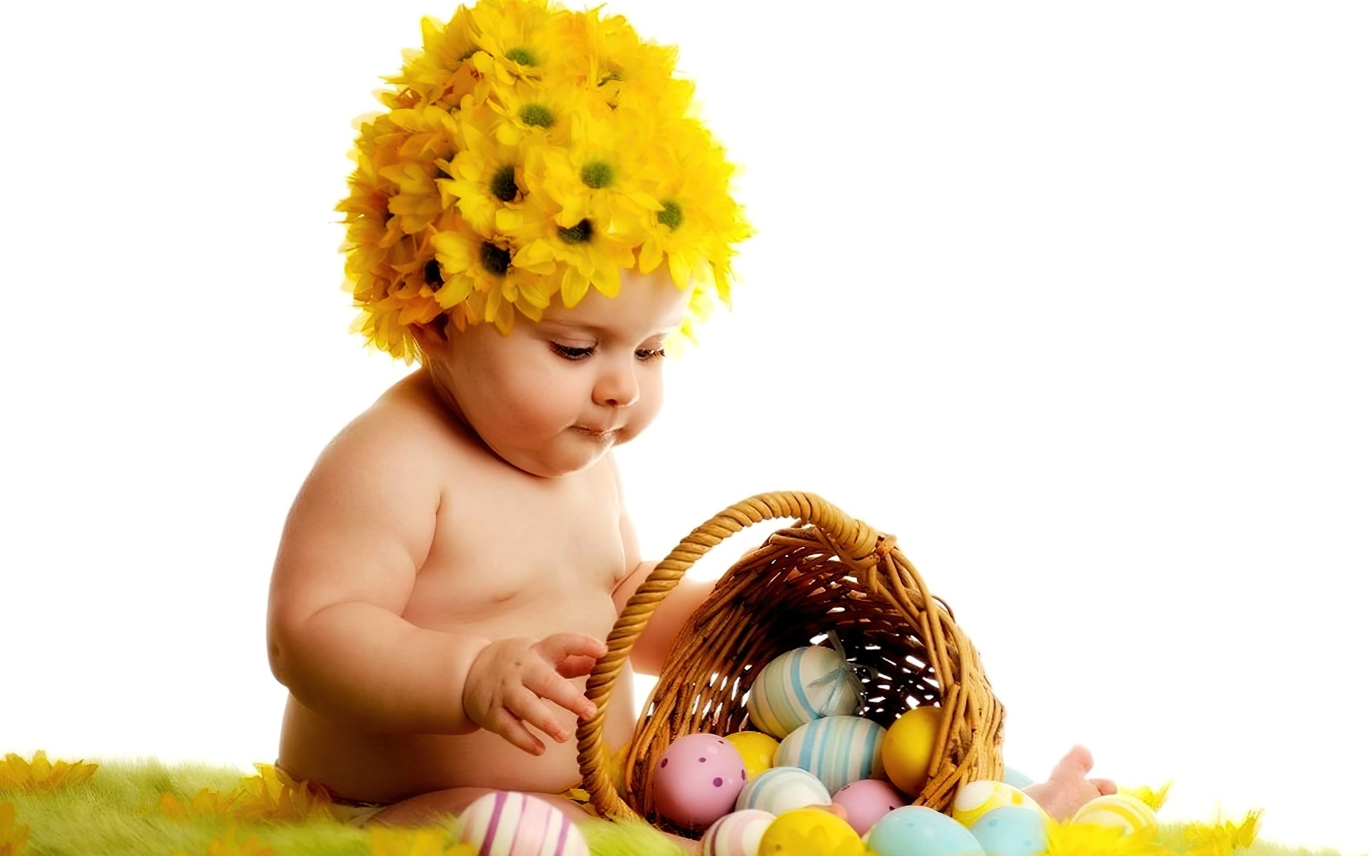 Edytor tapety: Dziecko, Koszyk, Kwiaty, Jajka