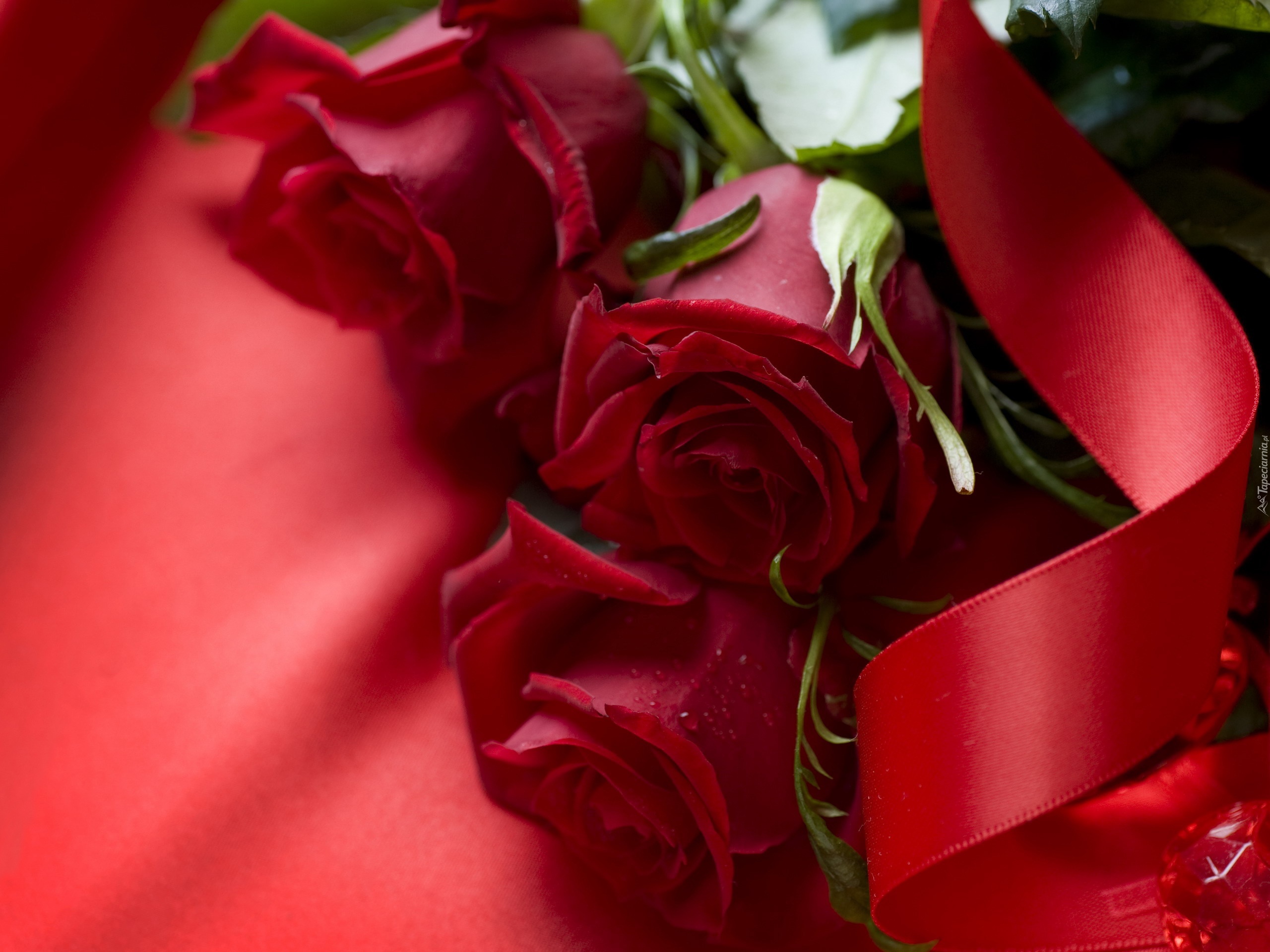 Edytor tapety: Bukiet, Czerwone, Róże, Szarfa