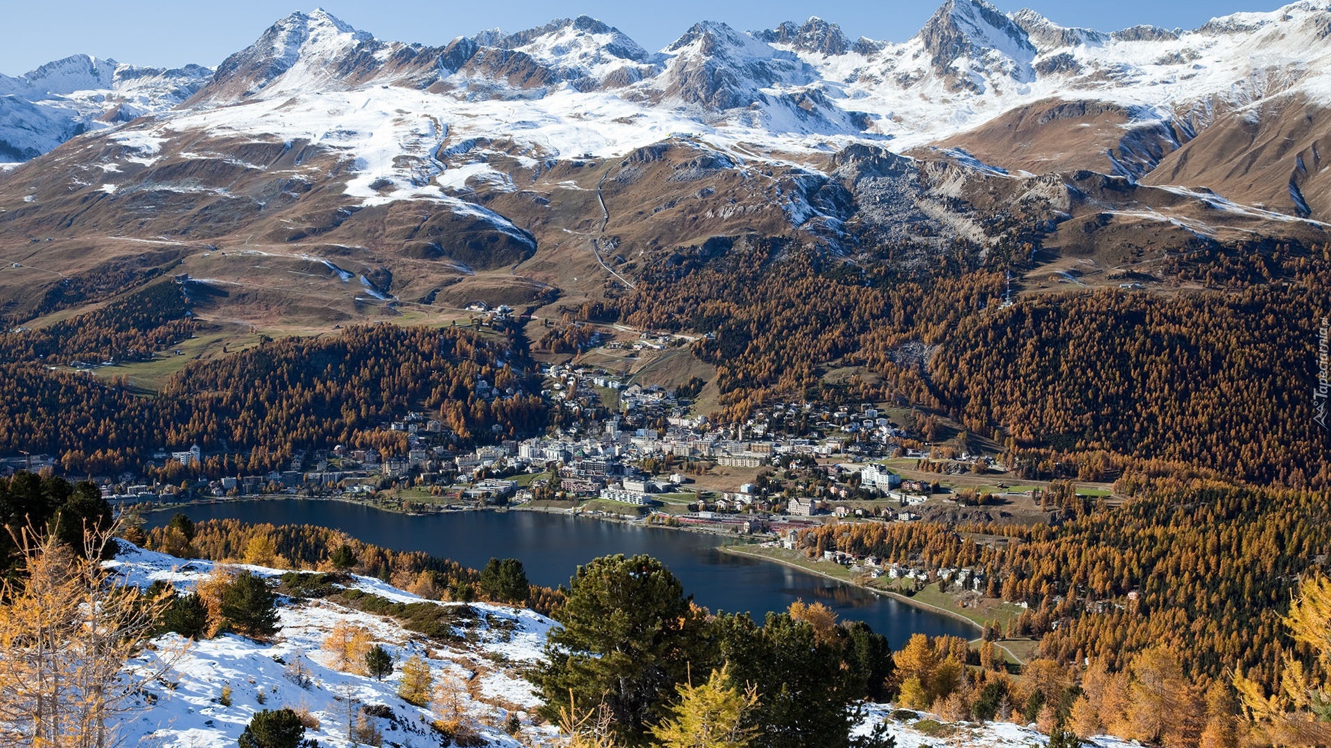 Edytor tapety: Dolina, Góry, Jezioro, Miasteczko