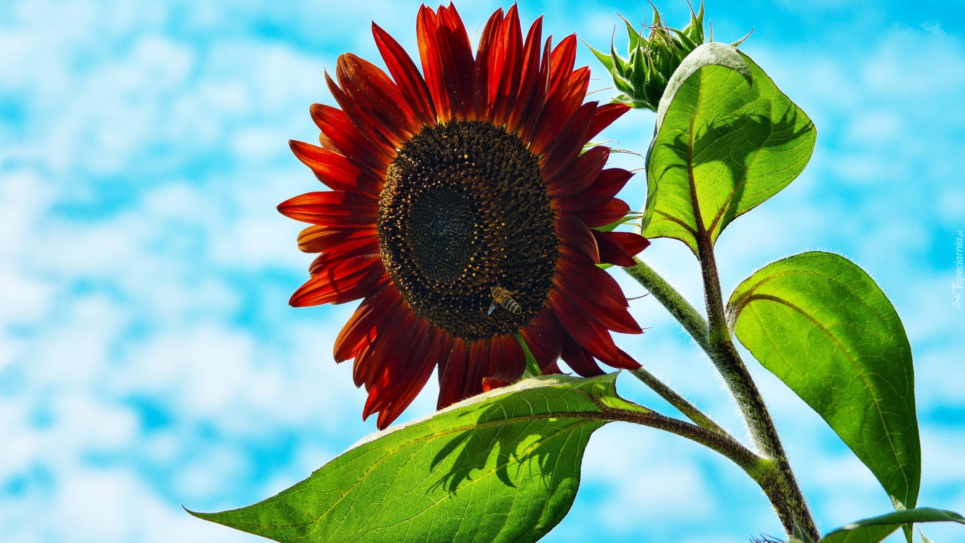 Edytor tapety: Czerwony, Słonecznik, Błękitne, Niebo