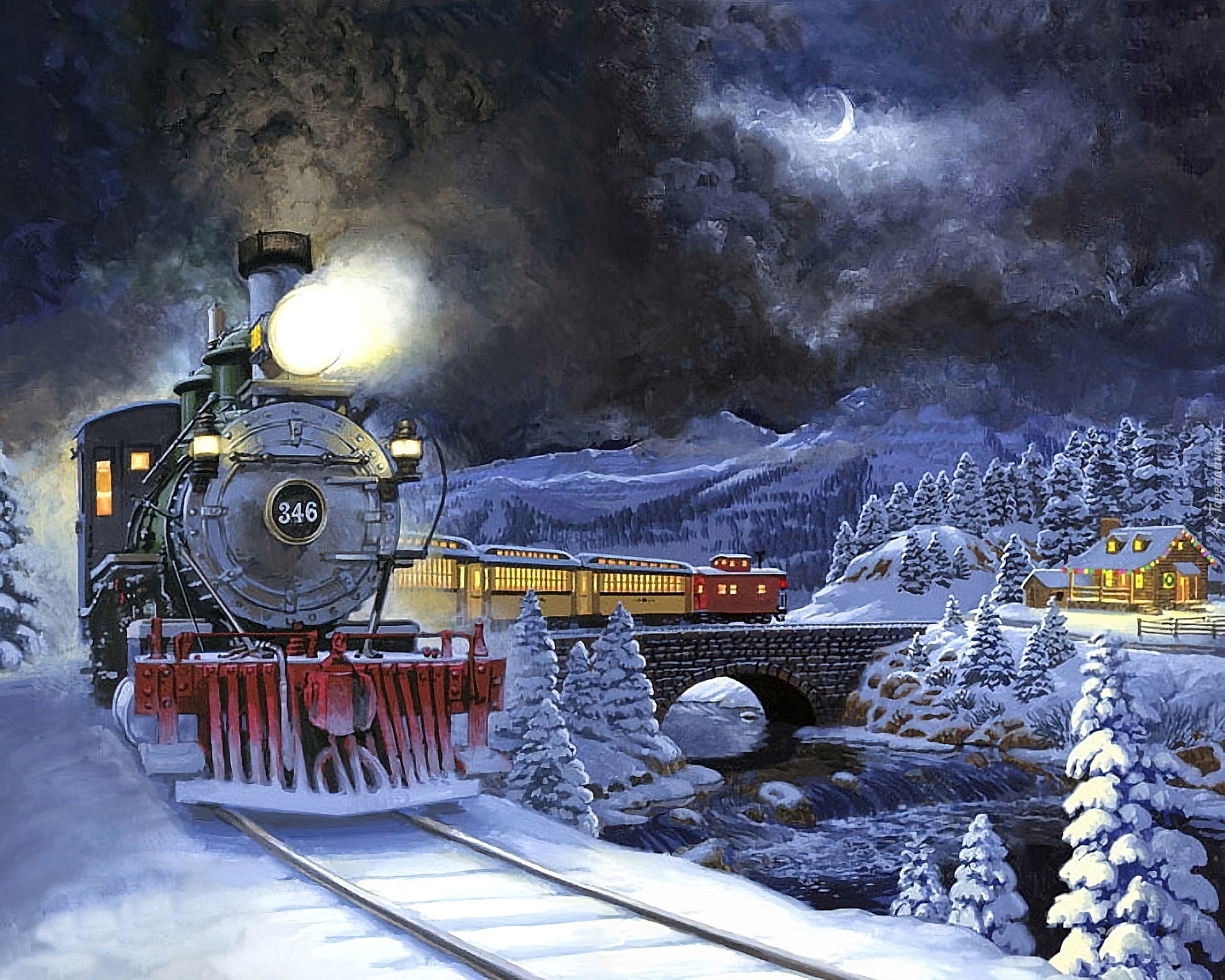 Edytor tapety: Pociąg, Noc, Góry, Zima