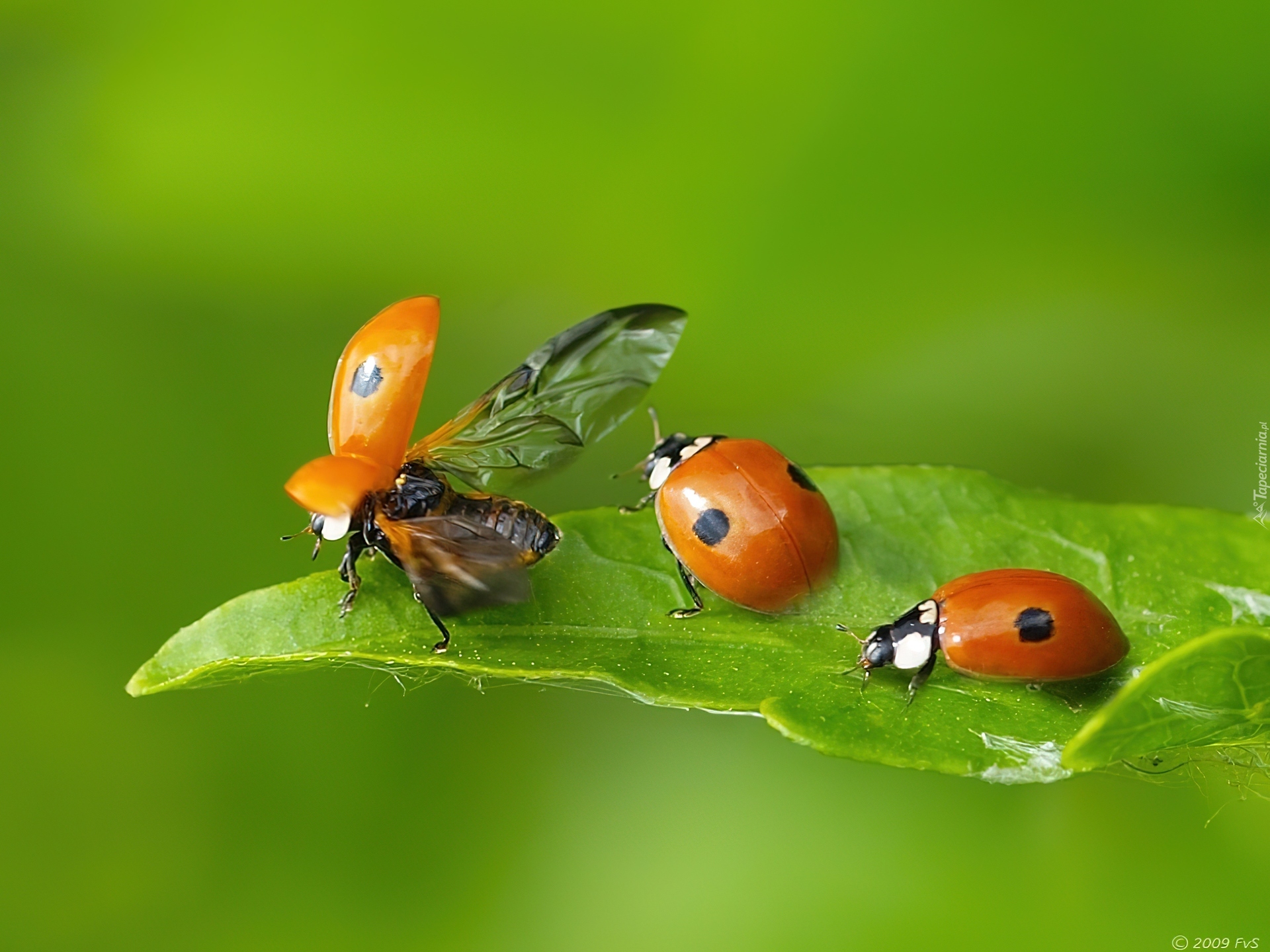 Edytor tapety: Trzy, Biedronki, Liść