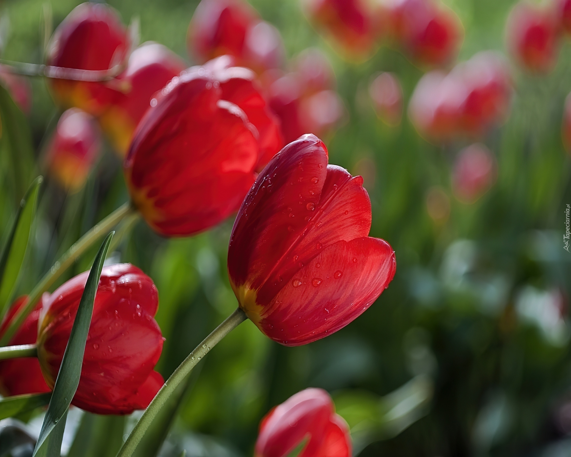 Edytor tapety: Czerwone, Tulipany, Krople, Wody