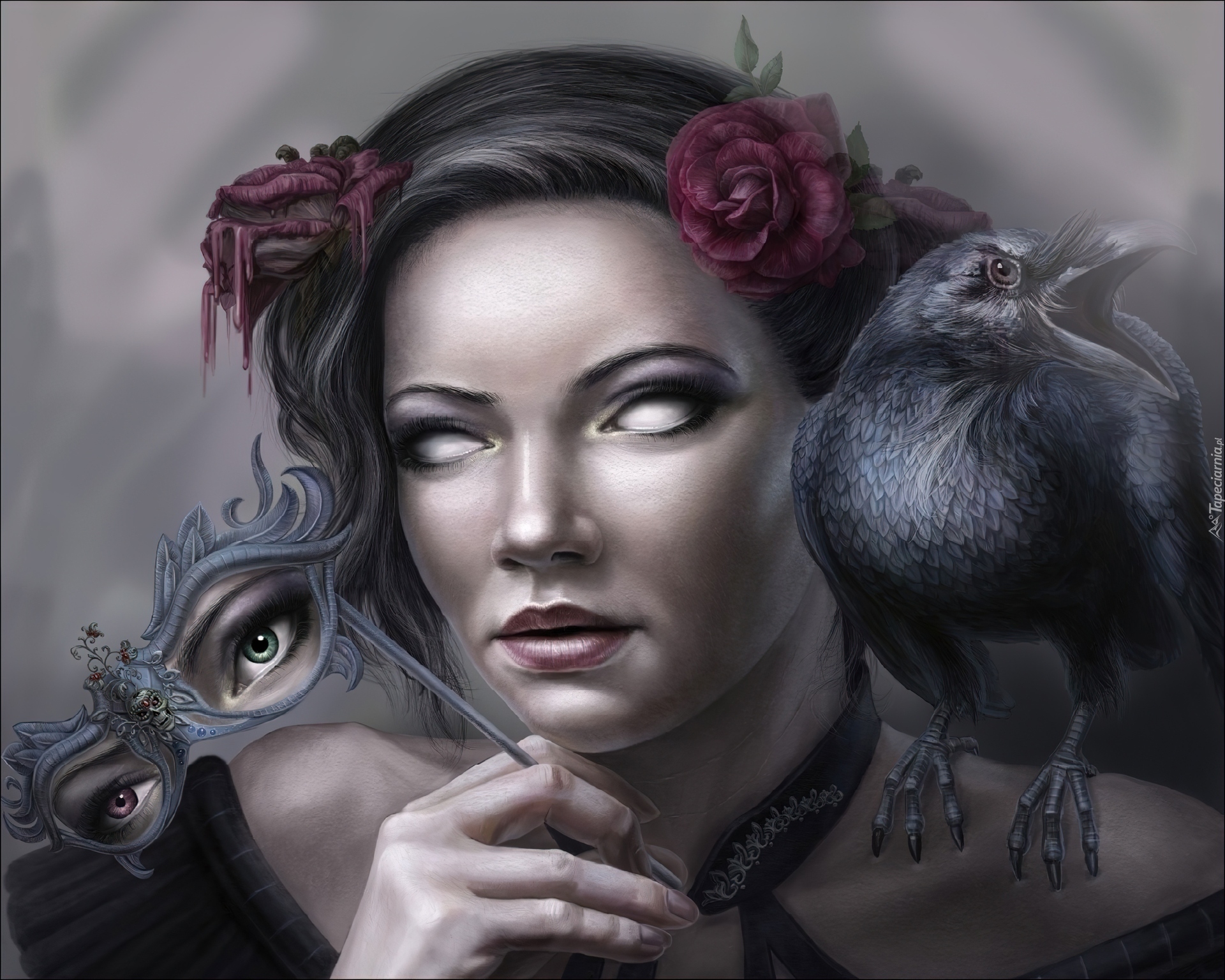 Edytor tapety: Kobieta, Maska, Kruk, Groza